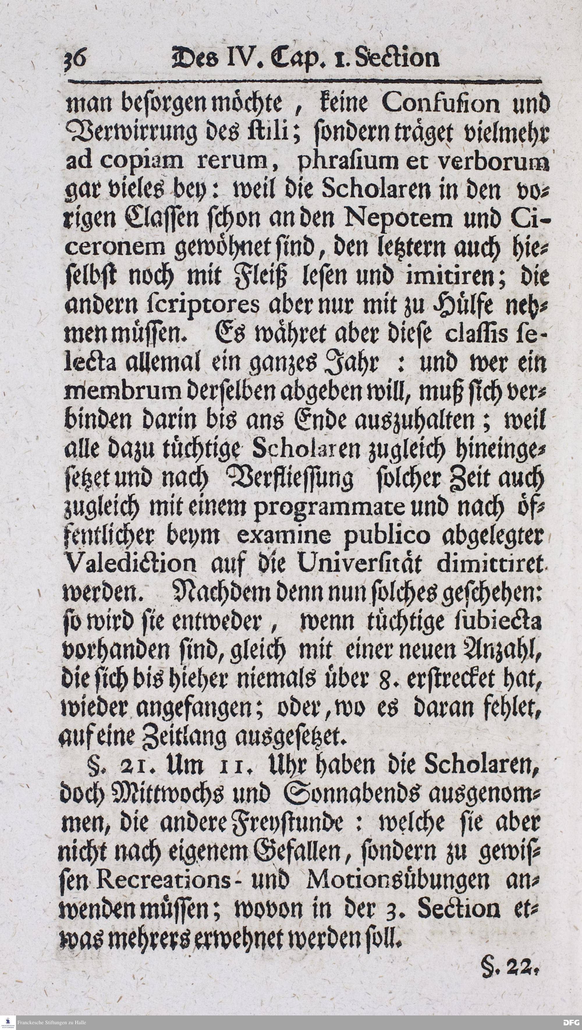 Kurzer Bericht Von der Gegenwärtigen Verfassung Des PAEDAGOGII REGII Zu Glaucha vor Halle / Aus der vormals schon edirten, nunmehro aber in vielen Stücken nach und nach verbesserten Ordnung und Lehrart herausgezogen und wiederholet. HALLE, Zu finden im Wäisenhause, MDCCXIII.