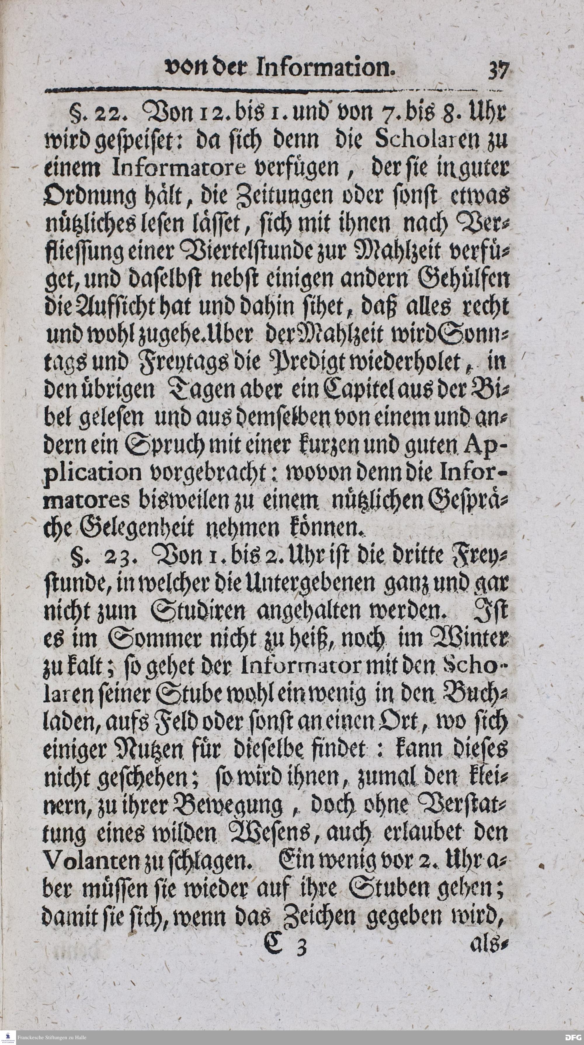 Kurzer Bericht Von der Gegenwärtigen Verfassung Des PAEDAGOGII REGII Zu Glaucha vor Halle / Aus der vormals schon edirten, nunmehro aber in vielen Stücken nach und nach verbesserten Ordnung und Lehrart herausgezogen und wiederholet. HALLE, Zu finden im Wäisenhause, MDCCXIII.