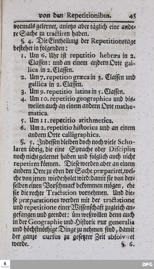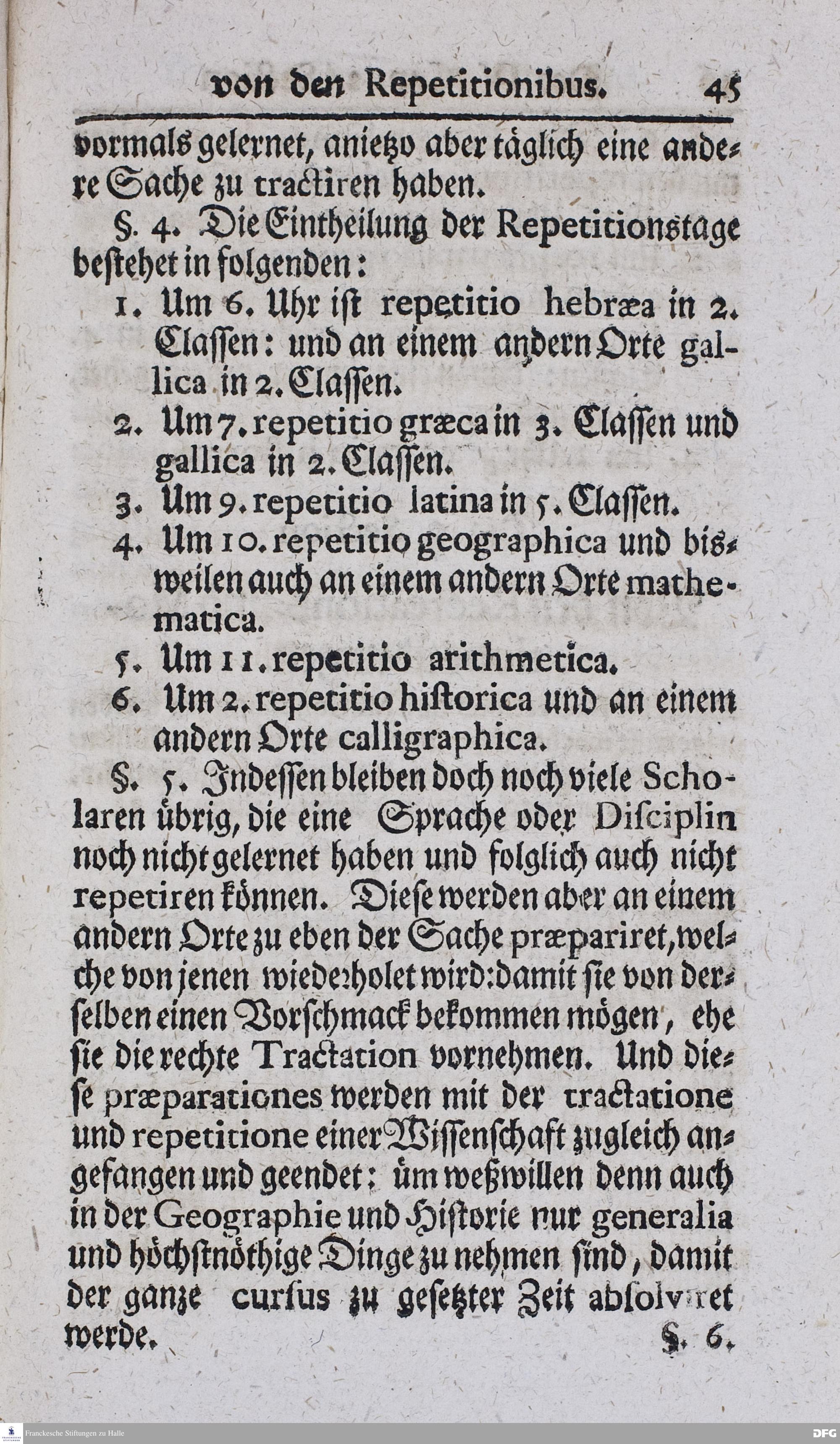 Kurzer Bericht Von der Gegenwärtigen Verfassung Des PAEDAGOGII REGII Zu Glaucha vor Halle / Aus der vormals schon edirten, nunmehro aber in vielen Stücken nach und nach verbesserten Ordnung und Lehrart herausgezogen und wiederholet. HALLE, Zu finden im Wäisenhause, MDCCXIII.