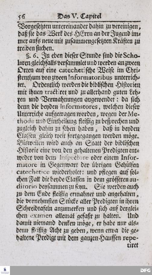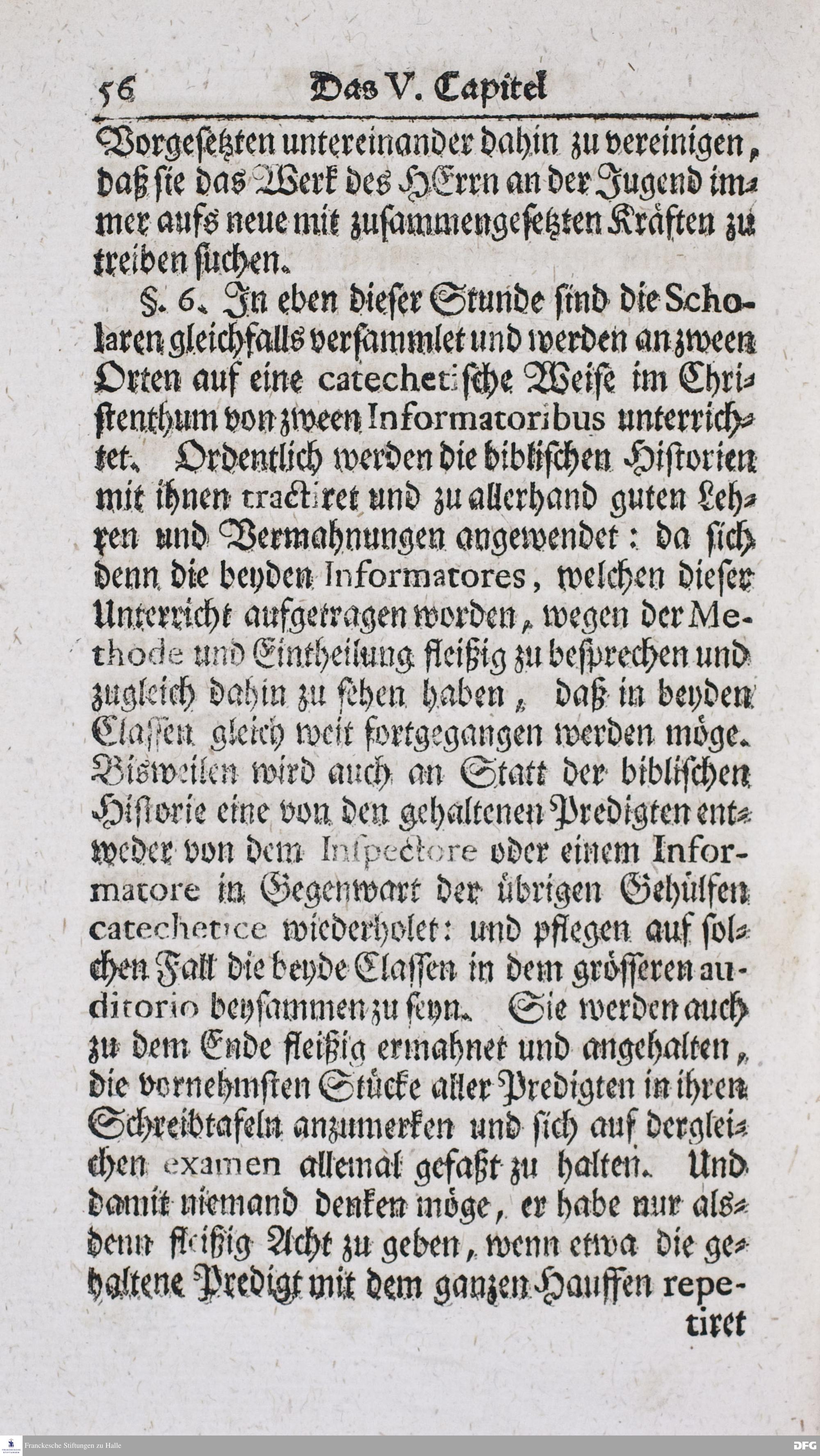 Kurzer Bericht Von der Gegenwärtigen Verfassung Des PAEDAGOGII REGII Zu Glaucha vor Halle / Aus der vormals schon edirten, nunmehro aber in vielen Stücken nach und nach verbesserten Ordnung und Lehrart herausgezogen und wiederholet. HALLE, Zu finden im Wäisenhause, MDCCXIII.