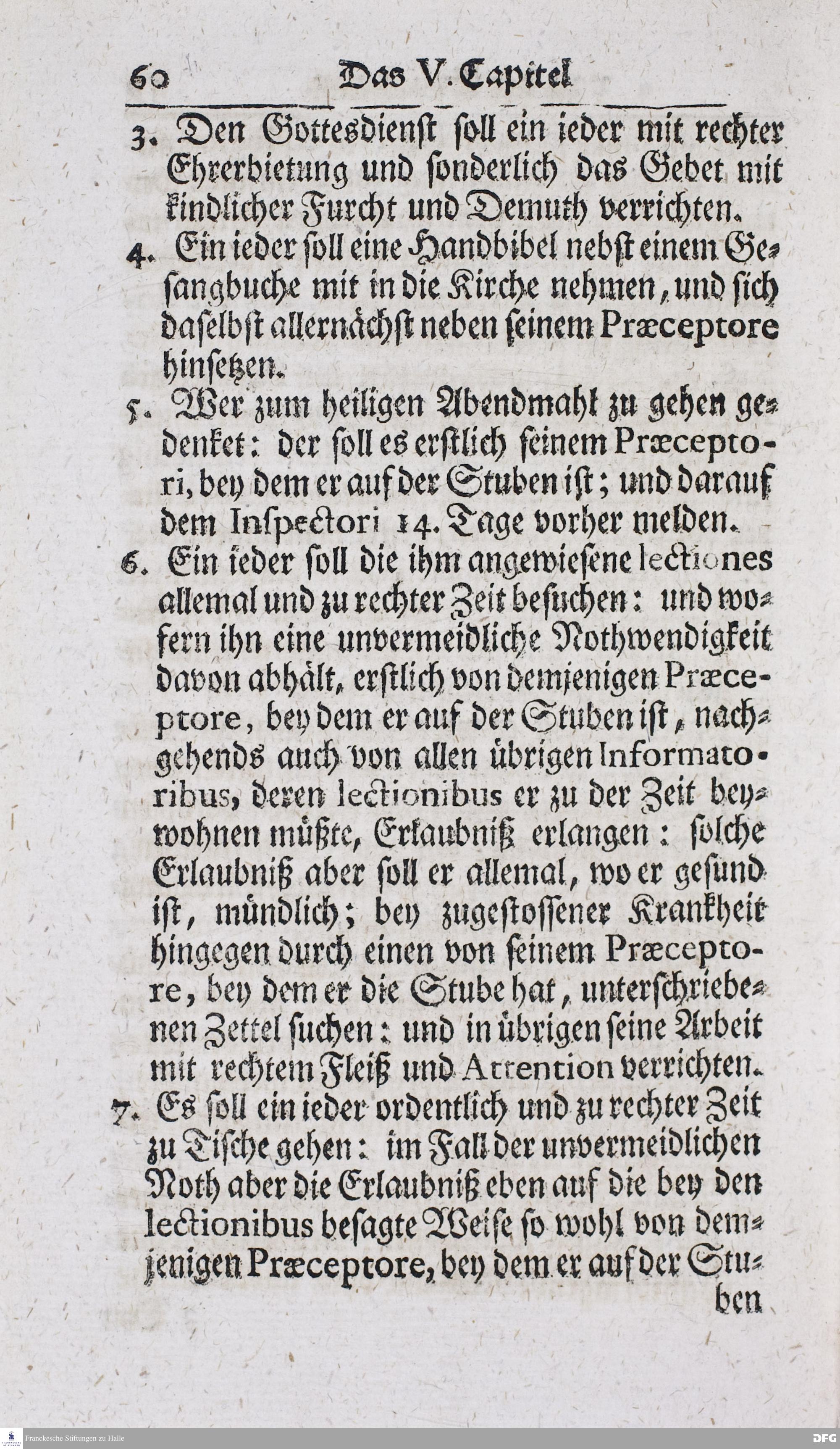 Kurzer Bericht Von der Gegenwärtigen Verfassung Des PAEDAGOGII REGII Zu Glaucha vor Halle / Aus der vormals schon edirten, nunmehro aber in vielen Stücken nach und nach verbesserten Ordnung und Lehrart herausgezogen und wiederholet. HALLE, Zu finden im Wäisenhause, MDCCXIII.