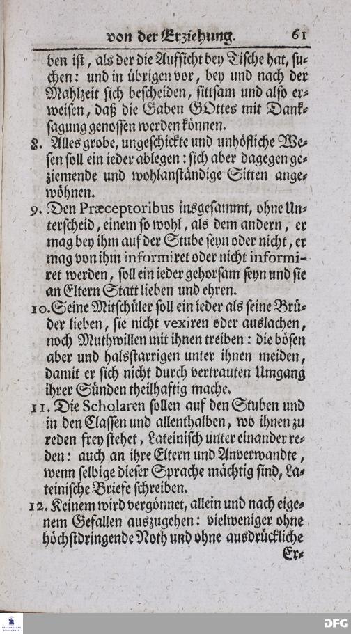 Kurzer Bericht Von der Gegenwärtigen Verfassung Des PAEDAGOGII REGII Zu Glaucha vor Halle / Aus der vormals schon edirten, nunmehro aber in vielen Stücken nach und nach verbesserten Ordnung und Lehrart herausgezogen und wiederholet. HALLE, Zu finden im Wäisenhause, MDCCXIII.