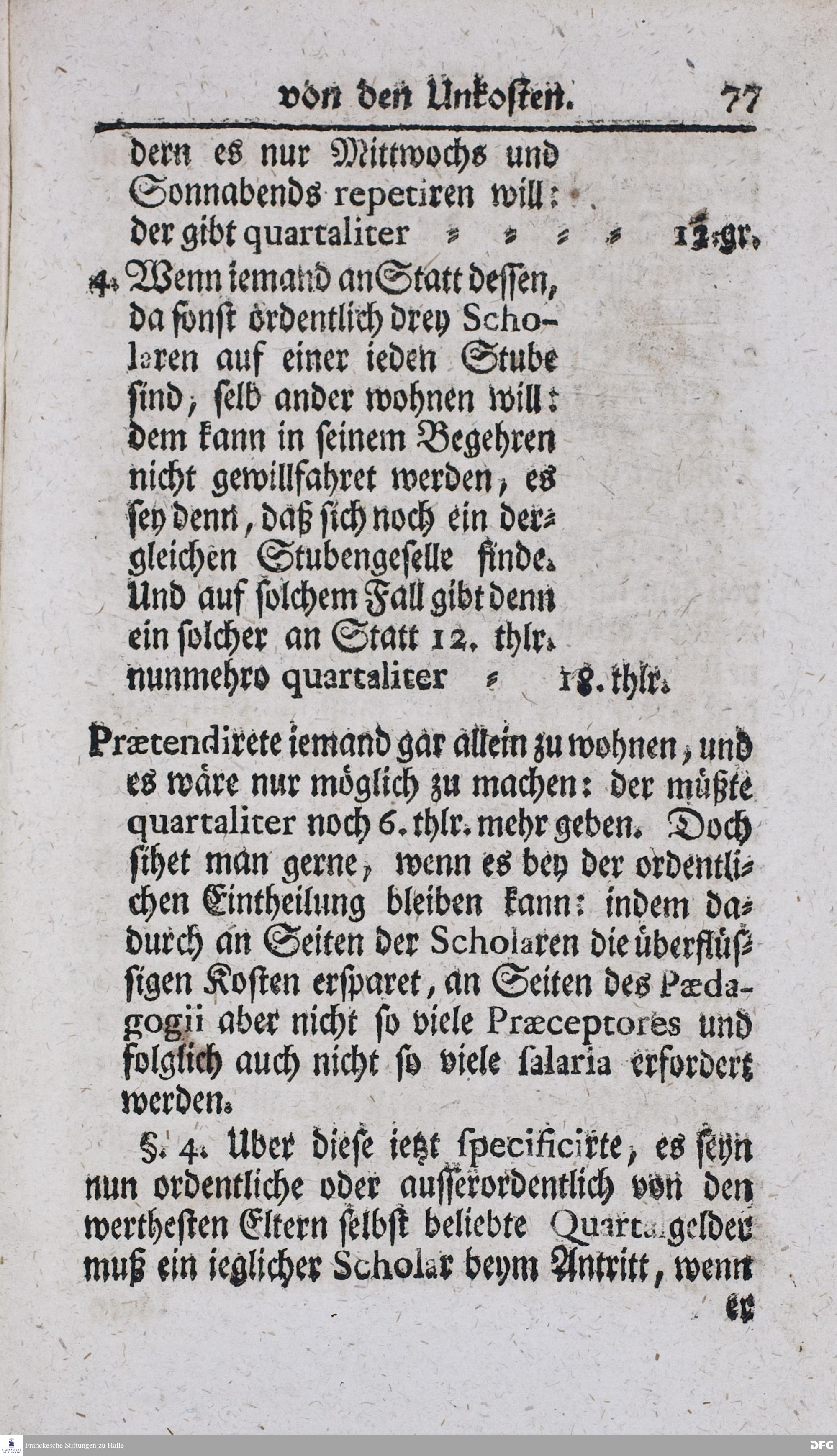Kurzer Bericht Von der Gegenwärtigen Verfassung Des PAEDAGOGII REGII Zu Glaucha vor Halle / Aus der vormals schon edirten, nunmehro aber in vielen Stücken nach und nach verbesserten Ordnung und Lehrart herausgezogen und wiederholet. HALLE, Zu finden im Wäisenhause, MDCCXIII.
