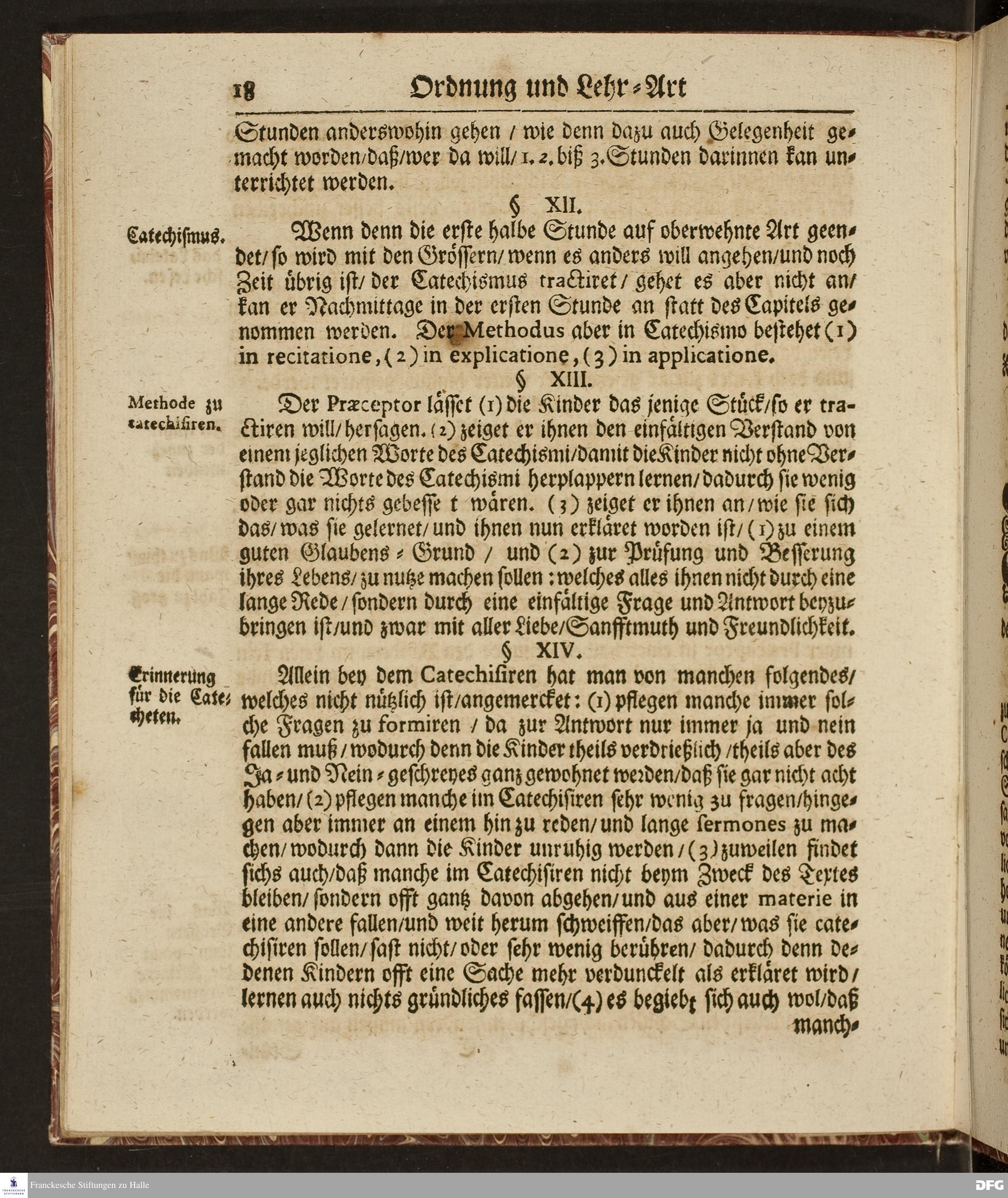 Ordnung und Lehr=Art / Wie selbige in denen zum Wäysen=Hause gehörigen Schulen eingeführet ist / Worinnen vornemlich zu befinden / Wie die Kinder in und ausser der Schul in Christlicher Zucht zu halten / und zum Lesen / zierlichen Schreiben / Rechnen / wie auch zur Music und andern nützlichen Dingen anzuführen sind / entworffen von August Hermann Francken / S.Theol.Prof.Ord.& Past. HALLE / Gedruckt im Wäysen=Hause / 1702.