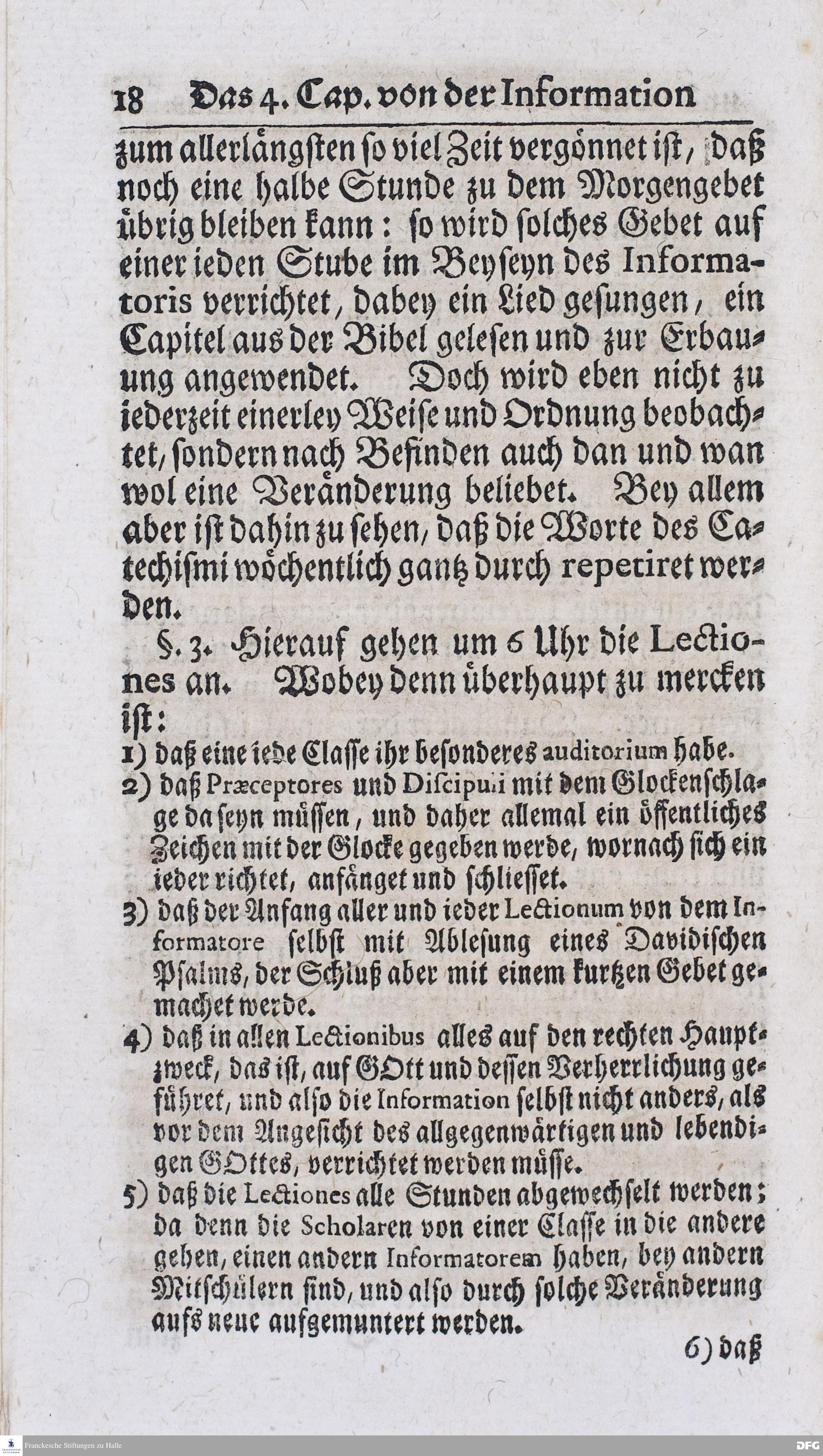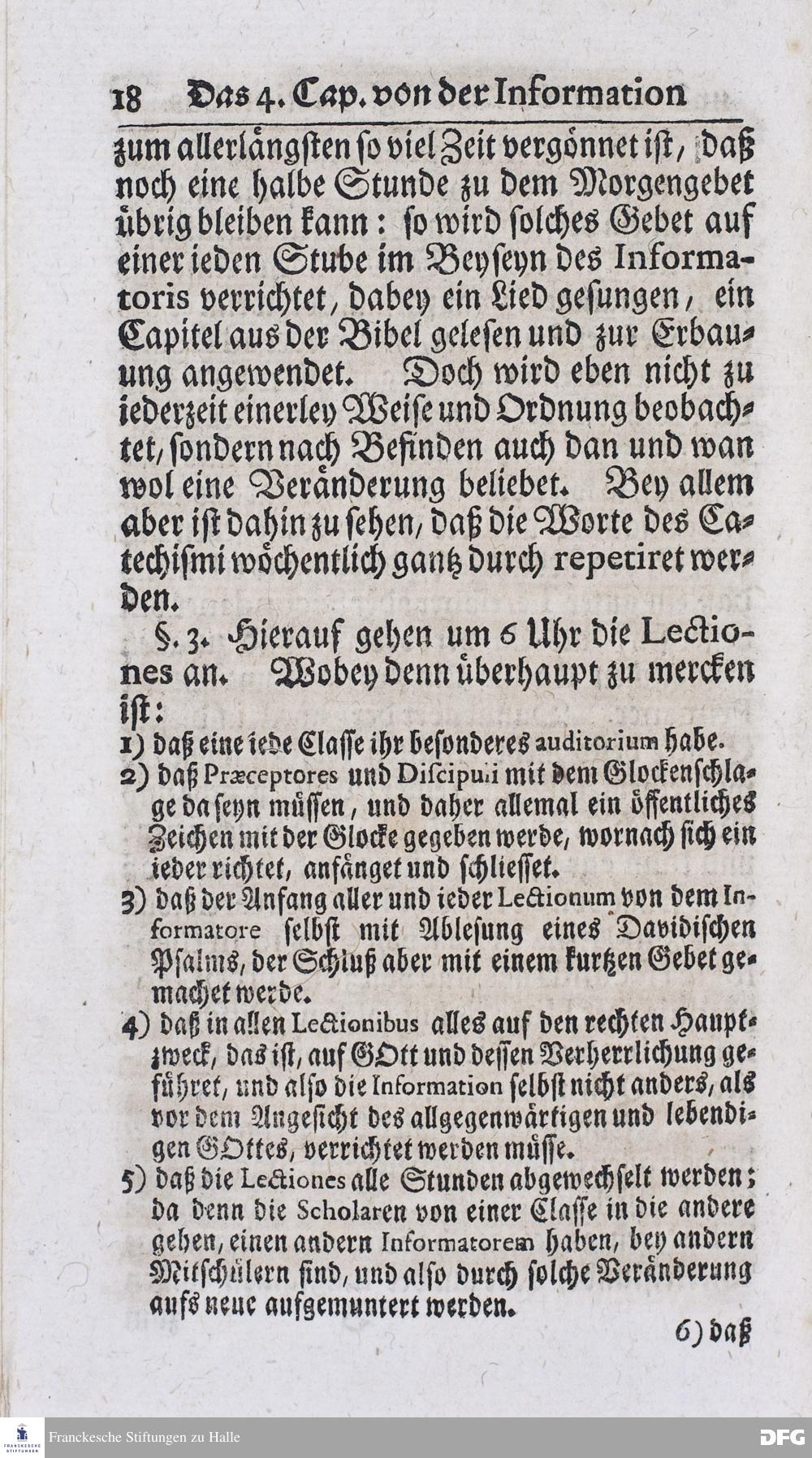 Kurtzer Bericht Von der Gegenwärtigen Verfassung Des PAEDAGOGII REGII Zu Glaucha vor Halle / Zum Dienst derer / Welche Nachfrage zu thun pflegen / Im Druck vorgeleget Von dem DIRECTORE desselben / August Hermann Francken / S.S.Theol.P.P.Ord.Past.Vlric.und Scholarcha. HALLE, Zu finden im Waisenhause, 1720.