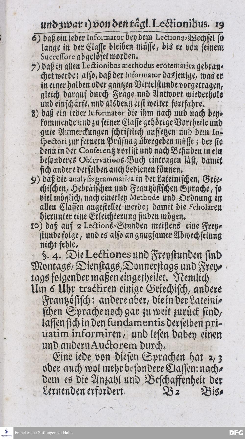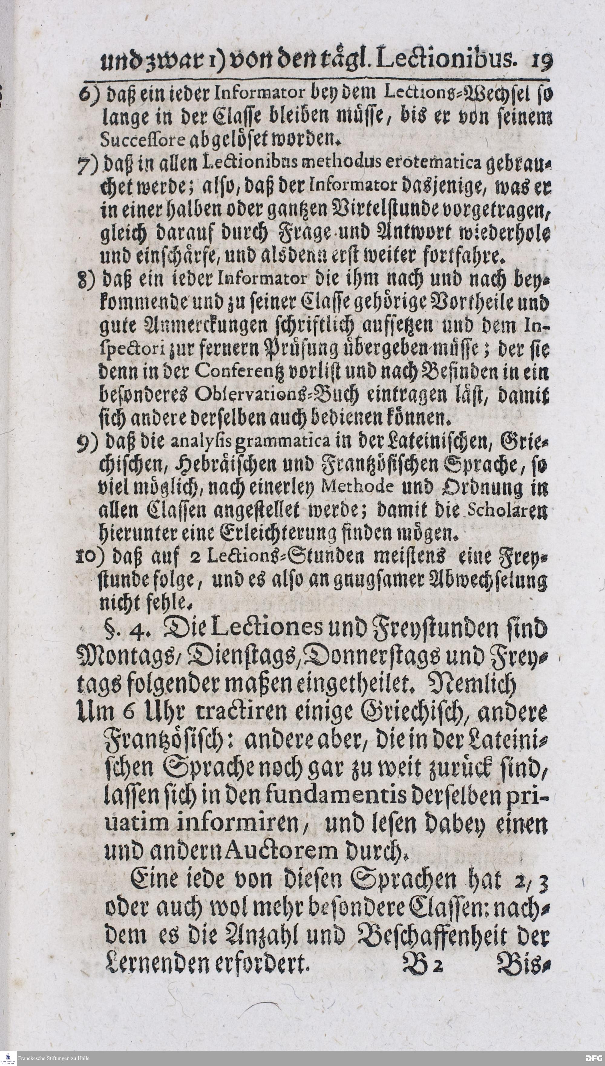 Kurtzer Bericht Von der Gegenwärtigen Verfassung Des PAEDAGOGII REGII Zu Glaucha vor Halle / Zum Dienst derer / Welche Nachfrage zu thun pflegen / Im Druck vorgeleget Von dem DIRECTORE desselben / August Hermann Francken / S.S.Theol.P.P.Ord.Past.Vlric.und Scholarcha. HALLE, Zu finden im Waisenhause, 1720.