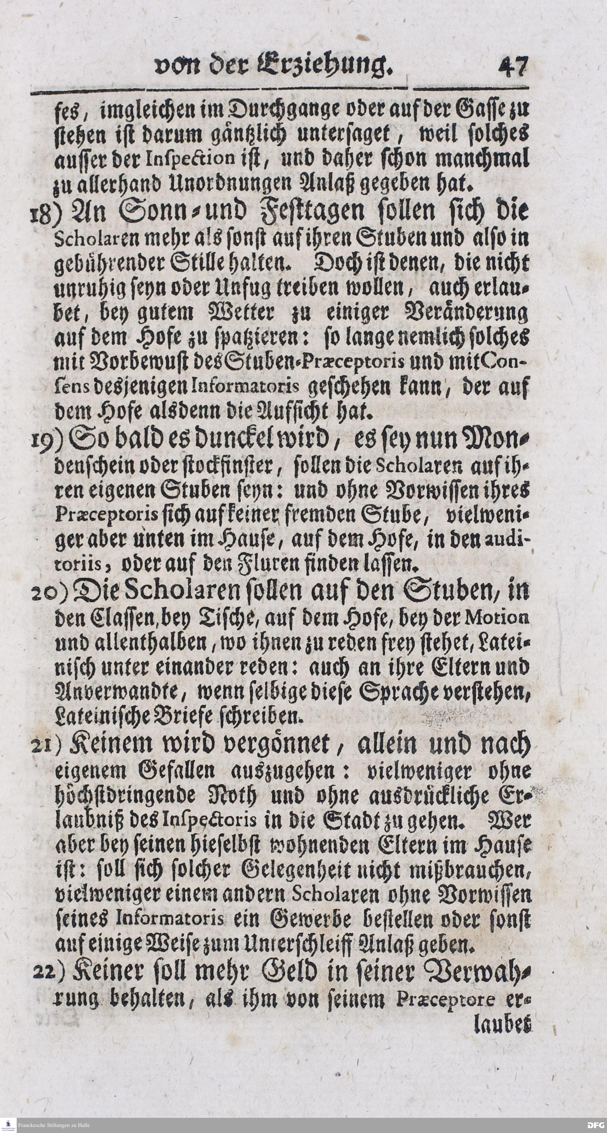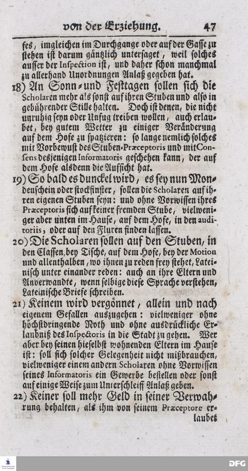 Kurtzer Bericht Von der Gegenwärtigen Verfassung Des PAEDAGOGII REGII Zu Glaucha vor Halle / Zum Dienst derer / Welche Nachfrage zu thun pflegen / Im Druck vorgeleget Von dem DIRECTORE desselben / August Hermann Francken / S.S.Theol.P.P.Ord.Past.Vlric.und Scholarcha. HALLE, Zu finden im Waisenhause, 1720.