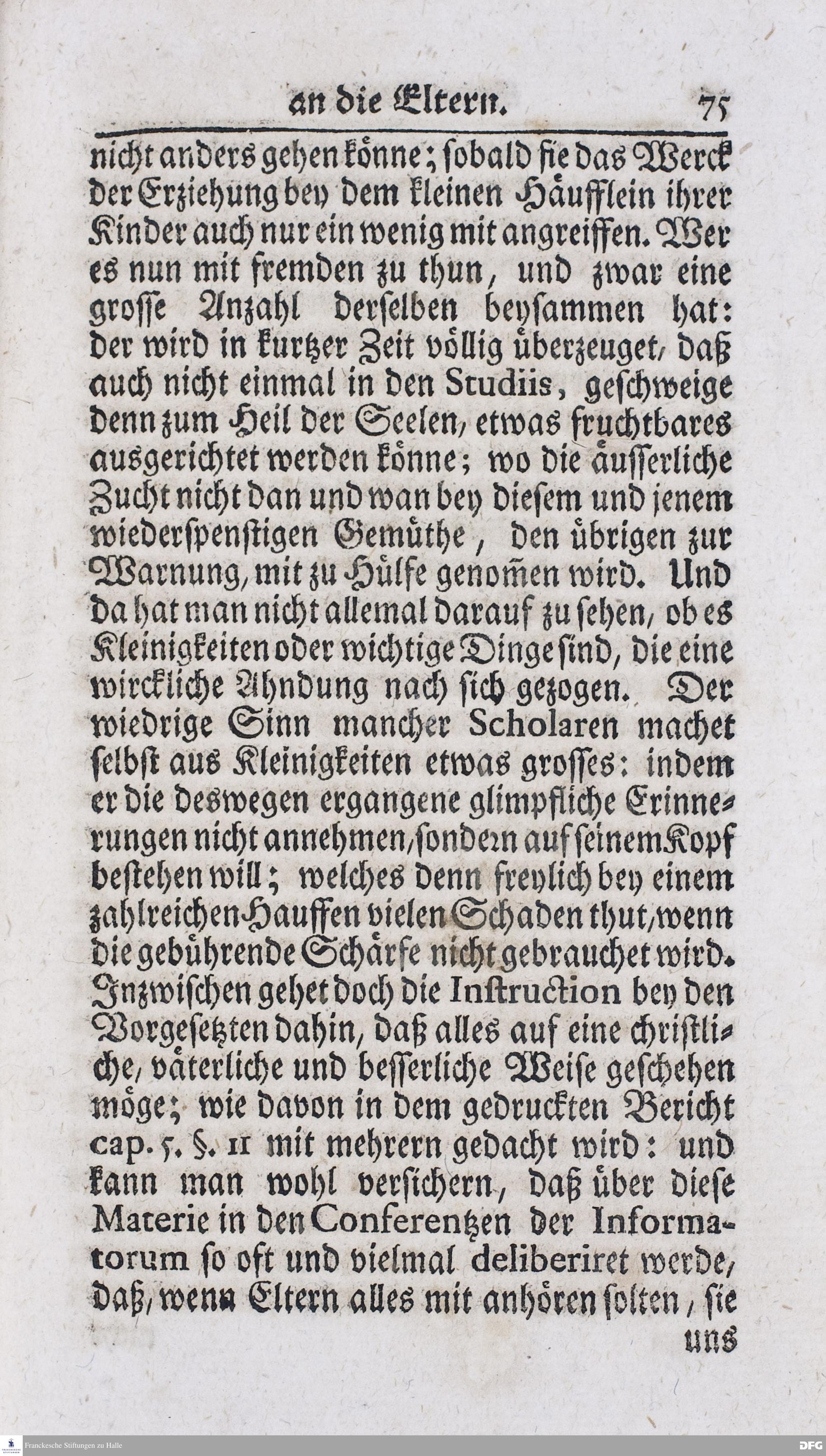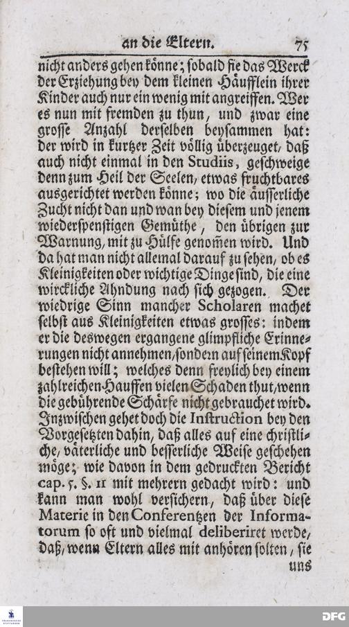 Kurtzer Bericht Von der Gegenwärtigen Verfassung Des PAEDAGOGII REGII Zu Glaucha vor Halle / Zum Dienst derer / Welche Nachfrage zu thun pflegen / Im Druck vorgeleget Von dem DIRECTORE desselben / August Hermann Francken / S.S.Theol.P.P.Ord.Past.Vlric.und Scholarcha. HALLE, Zu finden im Waisenhause, 1720.