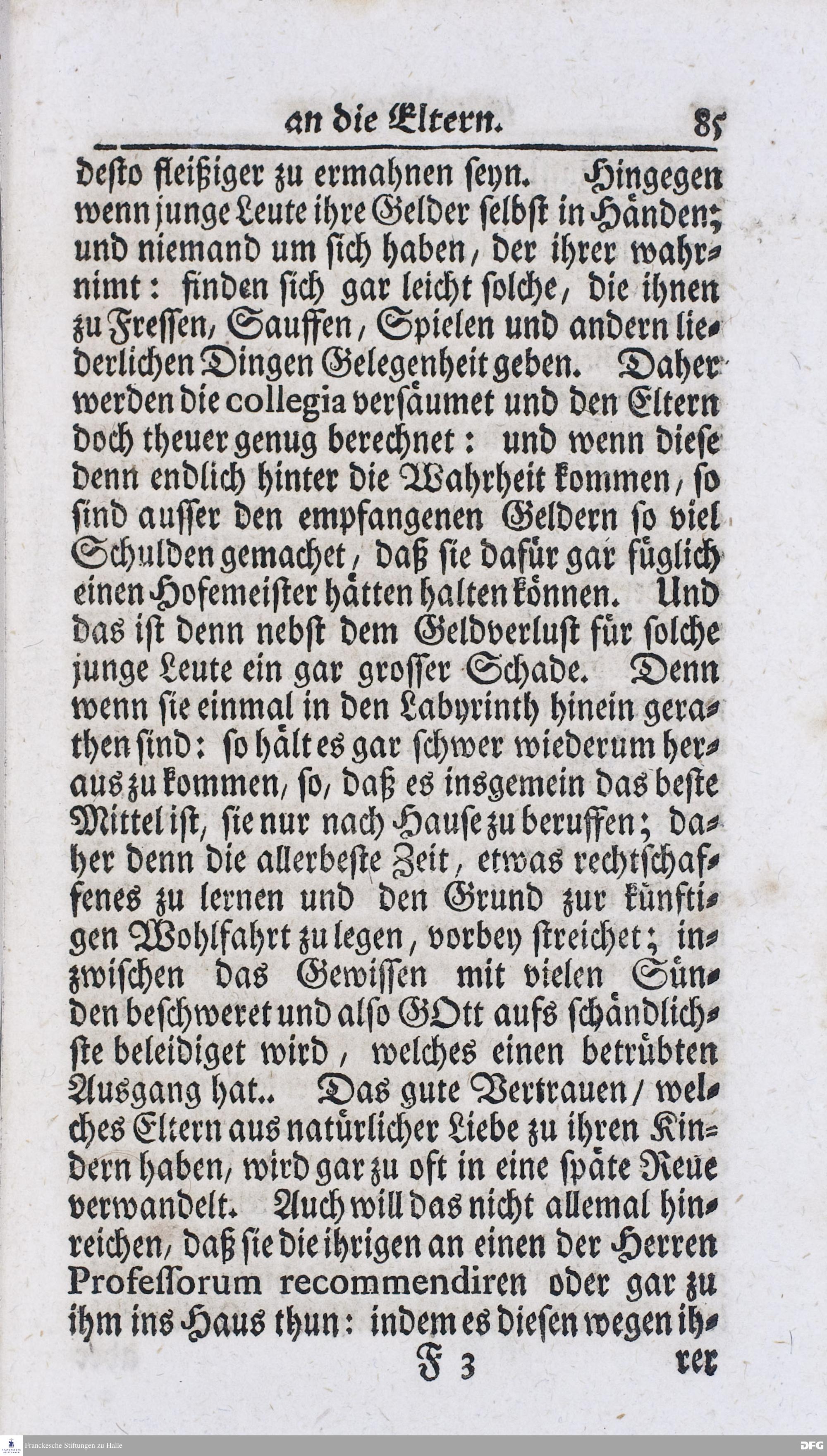 Kurtzer Bericht Von der Gegenwärtigen Verfassung Des PAEDAGOGII REGII Zu Glaucha vor Halle / Zum Dienst derer / Welche Nachfrage zu thun pflegen / Im Druck vorgeleget Von dem DIRECTORE desselben / August Hermann Francken / S.S.Theol.P.P.Ord.Past.Vlric.und Scholarcha. HALLE, Zu finden im Waisenhause, 1720.