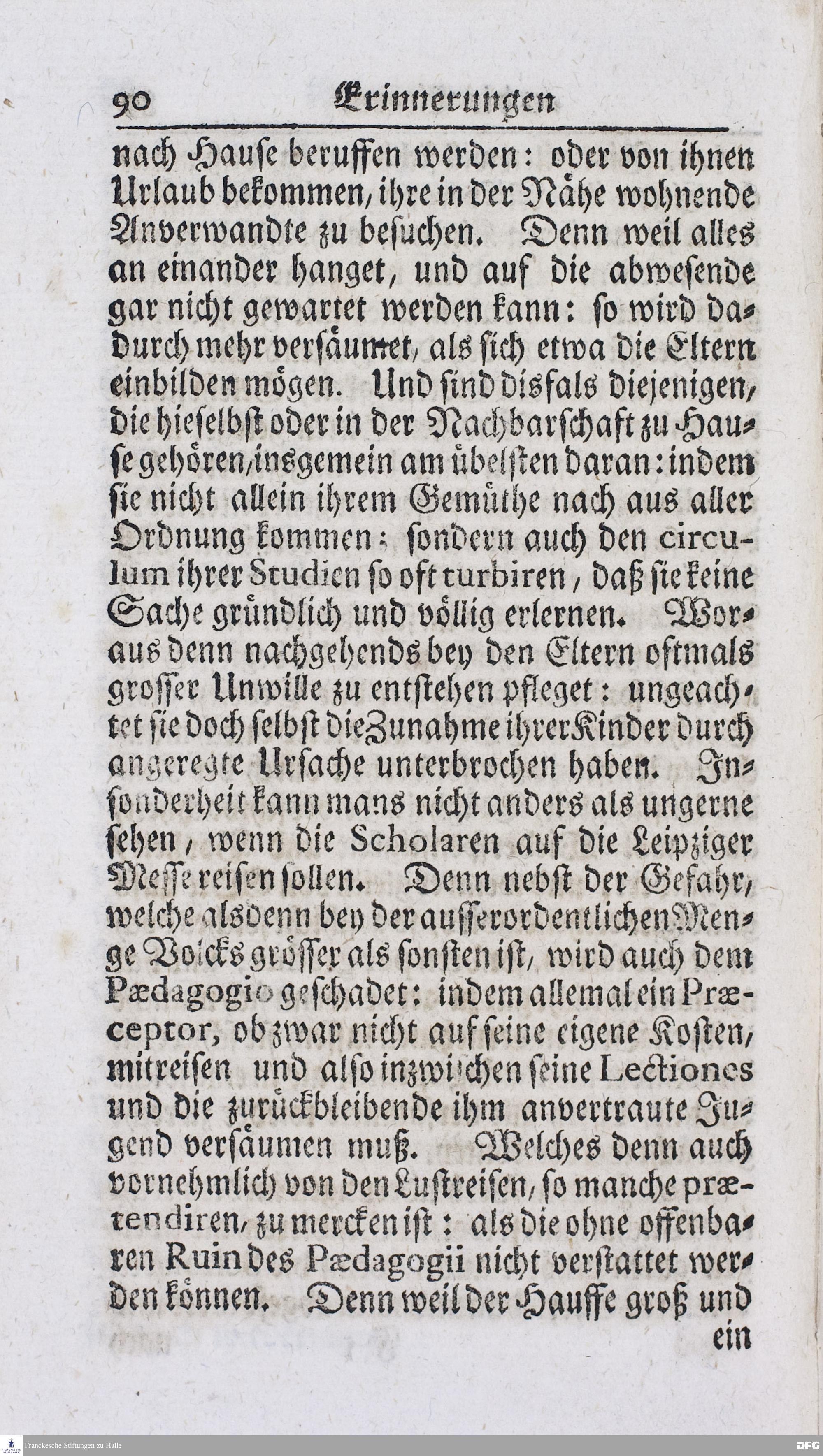 Kurtzer Bericht Von der Gegenwärtigen Verfassung Des PAEDAGOGII REGII Zu Glaucha vor Halle / Zum Dienst derer / Welche Nachfrage zu thun pflegen / Im Druck vorgeleget Von dem DIRECTORE desselben / August Hermann Francken / S.S.Theol.P.P.Ord.Past.Vlric.und Scholarcha. HALLE, Zu finden im Waisenhause, 1720.