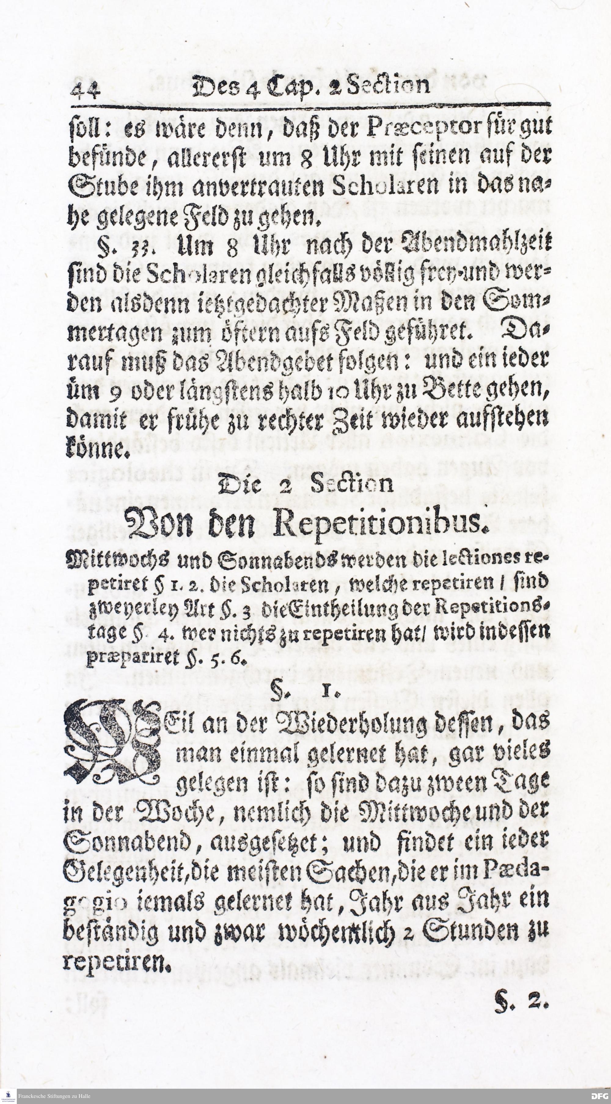 Kurzer Bericht Von der Gegenwärtigen Verfassung Des PAEDAGOGII REGII Zu Glaucha vor Halle / Aus der vormals schon edirten, nunmehro aber in vielen Stücken nach und nach verbesserten Ordnung und Lehrart herausgezogen. HALLE, Zu finden im Wäisenhause, MDCCXIV.
