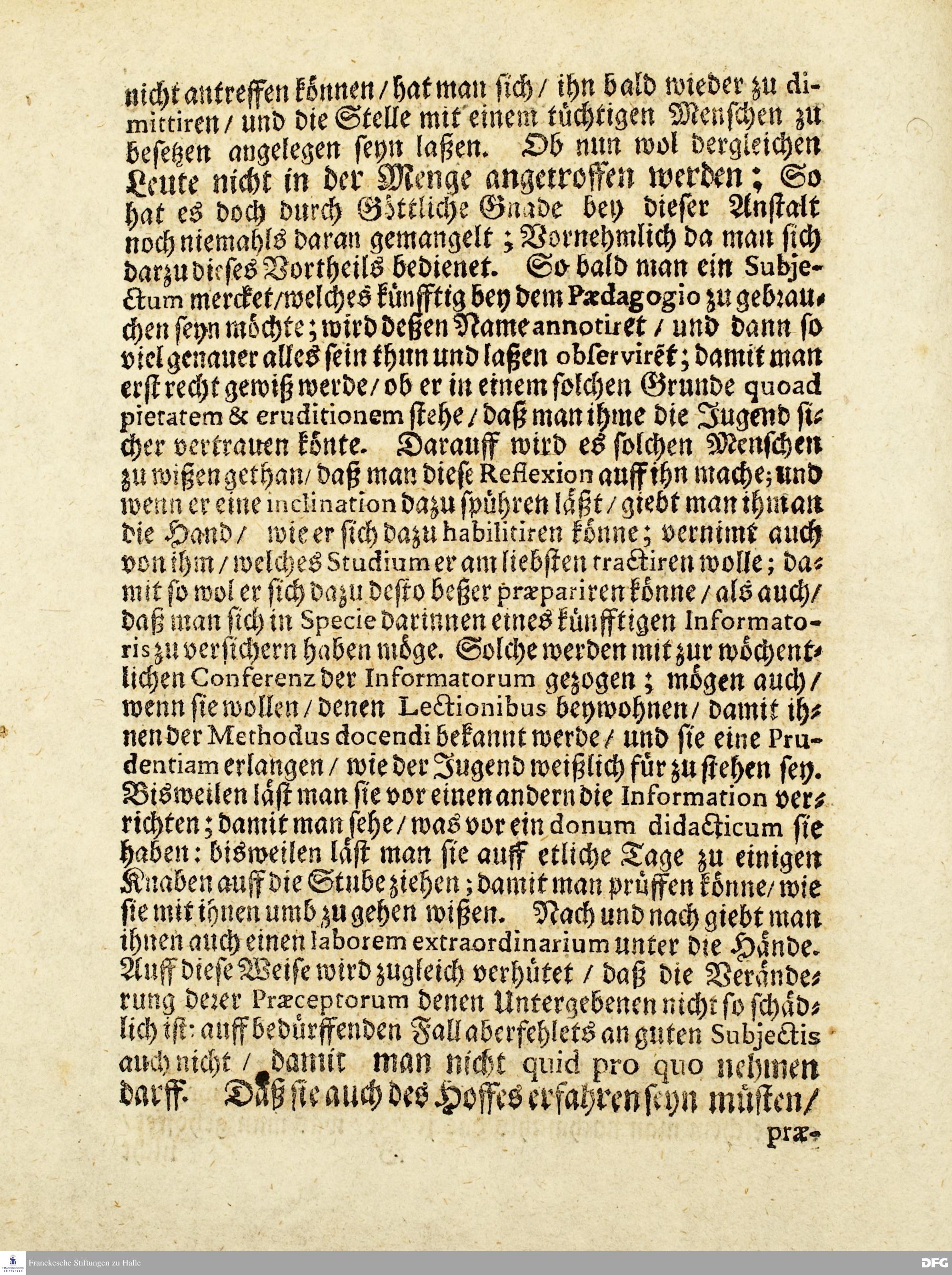 Erläuterung Der 1699. edirten Einrichtung Des PÆDAGOGII Zu Glaucha an Halle / Zu wahrer Nachricht und Ablehnung vieler davon hin und wieder gefasseten ungleichen Gedancken entworffen. Im May Anno 1700. HALLE / Druckts Christian Henckel / Univers.Buchdr.