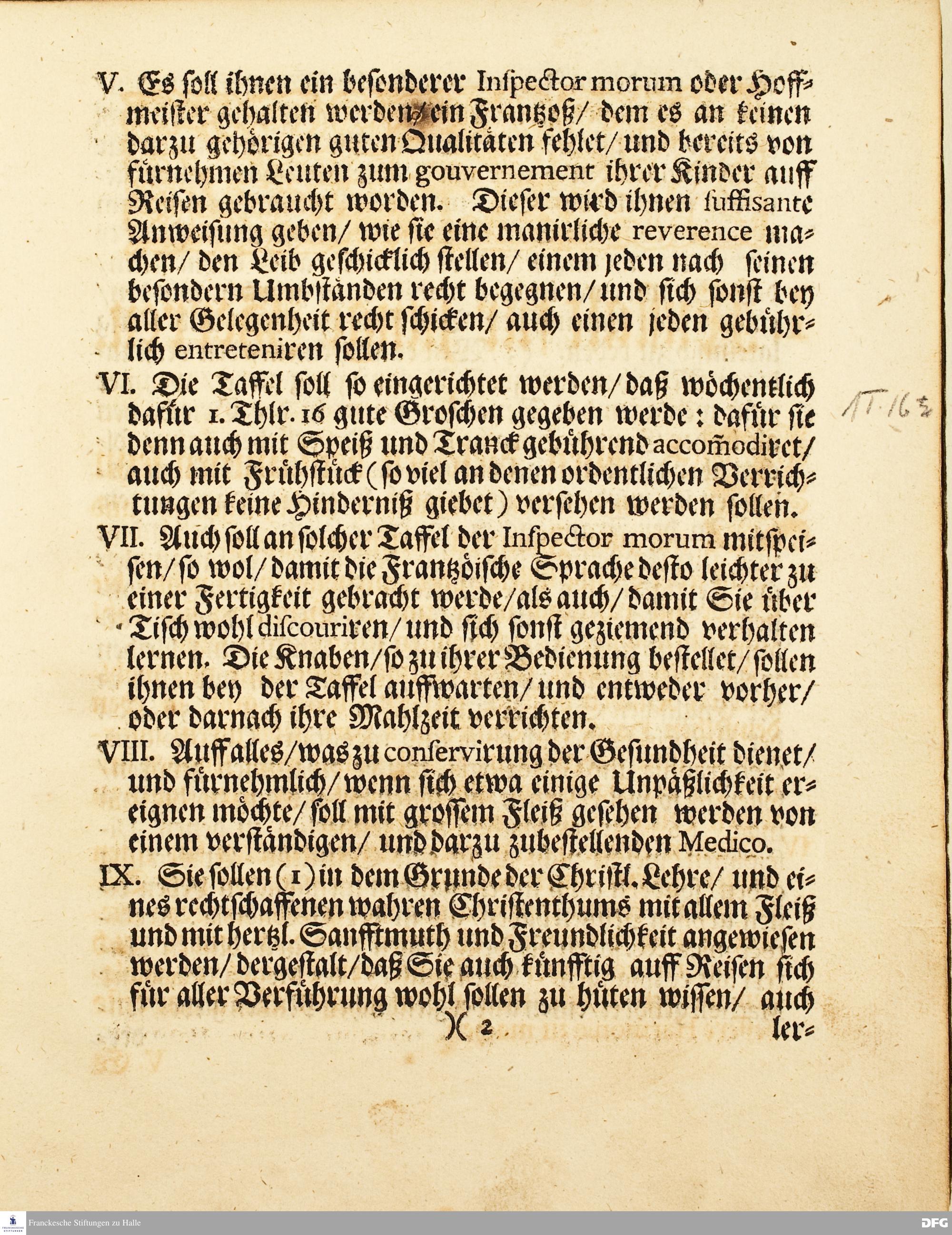Projecte, Wie die Anführung Herren=Standes / Adelicher und anderer fürnehmen Jugend veranstaltet / Und guten Theils wircklich eingerichtet und angefangen / Zu HALLE im Hertzogthum Magdeburg / Anno 1698. Druckts Christian Henckel / Univers.Buchdr.