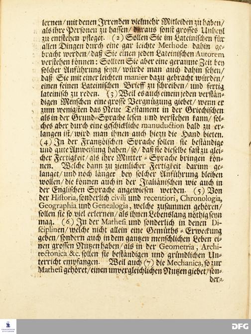 Projecte, Wie die Anführung Herren=Standes / Adelicher und anderer fürnehmen Jugend veranstaltet / Und guten Theils wircklich eingerichtet und angefangen / Zu HALLE im Hertzogthum Magdeburg / Anno 1698. Druckts Christian Henckel / Univers.Buchdr.