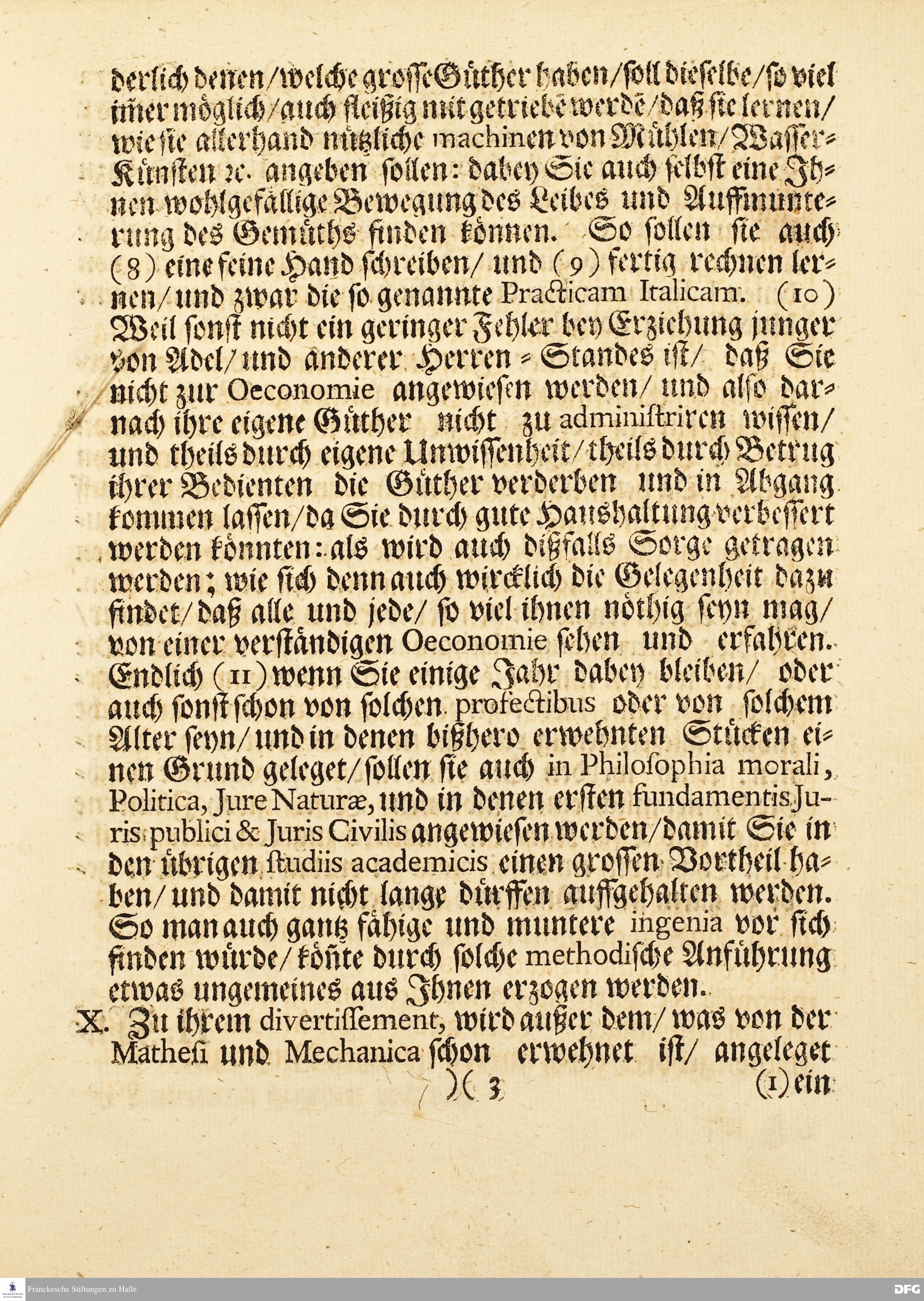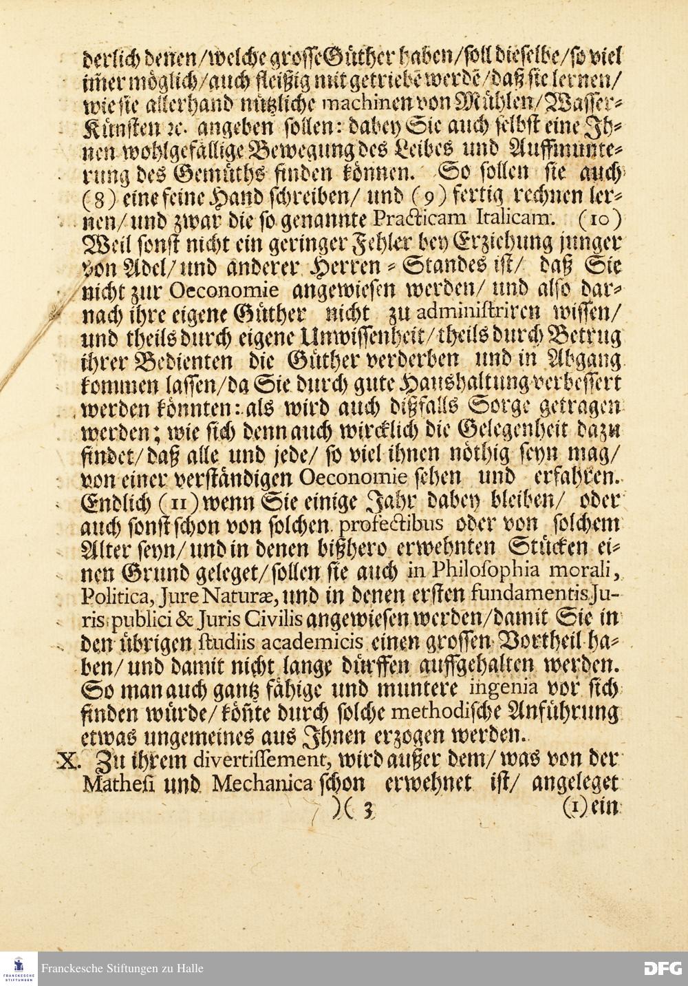 Projecte, Wie die Anführung Herren=Standes / Adelicher und anderer fürnehmen Jugend veranstaltet / Und guten Theils wircklich eingerichtet und angefangen / Zu HALLE im Hertzogthum Magdeburg / Anno 1698. Druckts Christian Henckel / Univers.Buchdr.