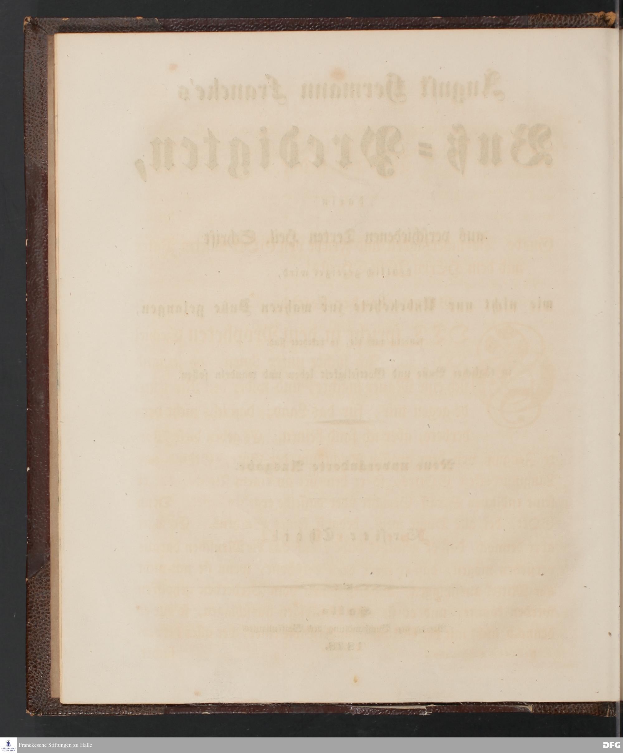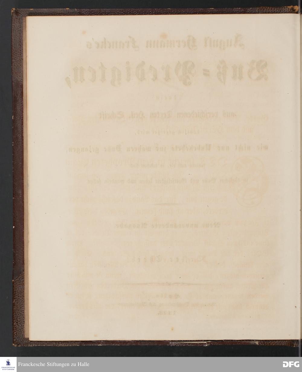August Hermann Francke's Buß=Predigten, darin aus verschiedenen Texten Heil. Schrift deutlich gezeiget wird, wie nicht nur Unbekehrte zur wahren Buße gelangen, sondern auch die, so bekehret sind, in täglicher Buße und Gottseligkeit leben und wandeln sollen. Neue unveränderte Ausgabe. Erster [und Zweiter] Theil. Halle, Verlag der Buchhandlung des Waisenhauses. 1848.
