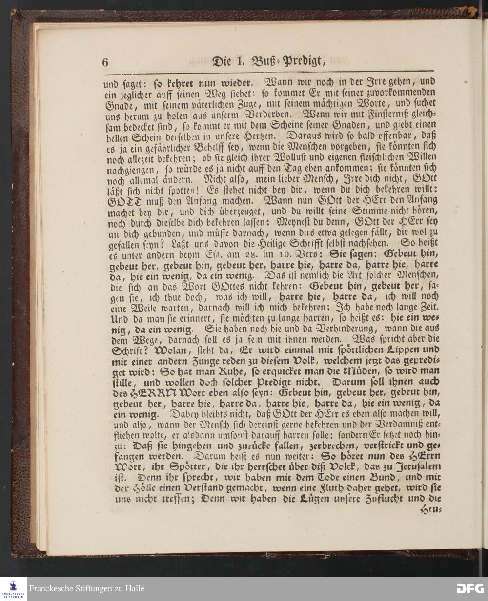 August Hermann Francke's Buß=Predigten, darin aus verschiedenen Texten Heil. Schrift deutlich gezeiget wird, wie nicht nur Unbekehrte zur wahren Buße gelangen, sondern auch die, so bekehret sind, in täglicher Buße und Gottseligkeit leben und wandeln sollen. Neue unveränderte Ausgabe. Erster [und Zweiter] Theil. Halle, Verlag der Buchhandlung des Waisenhauses. 1848.