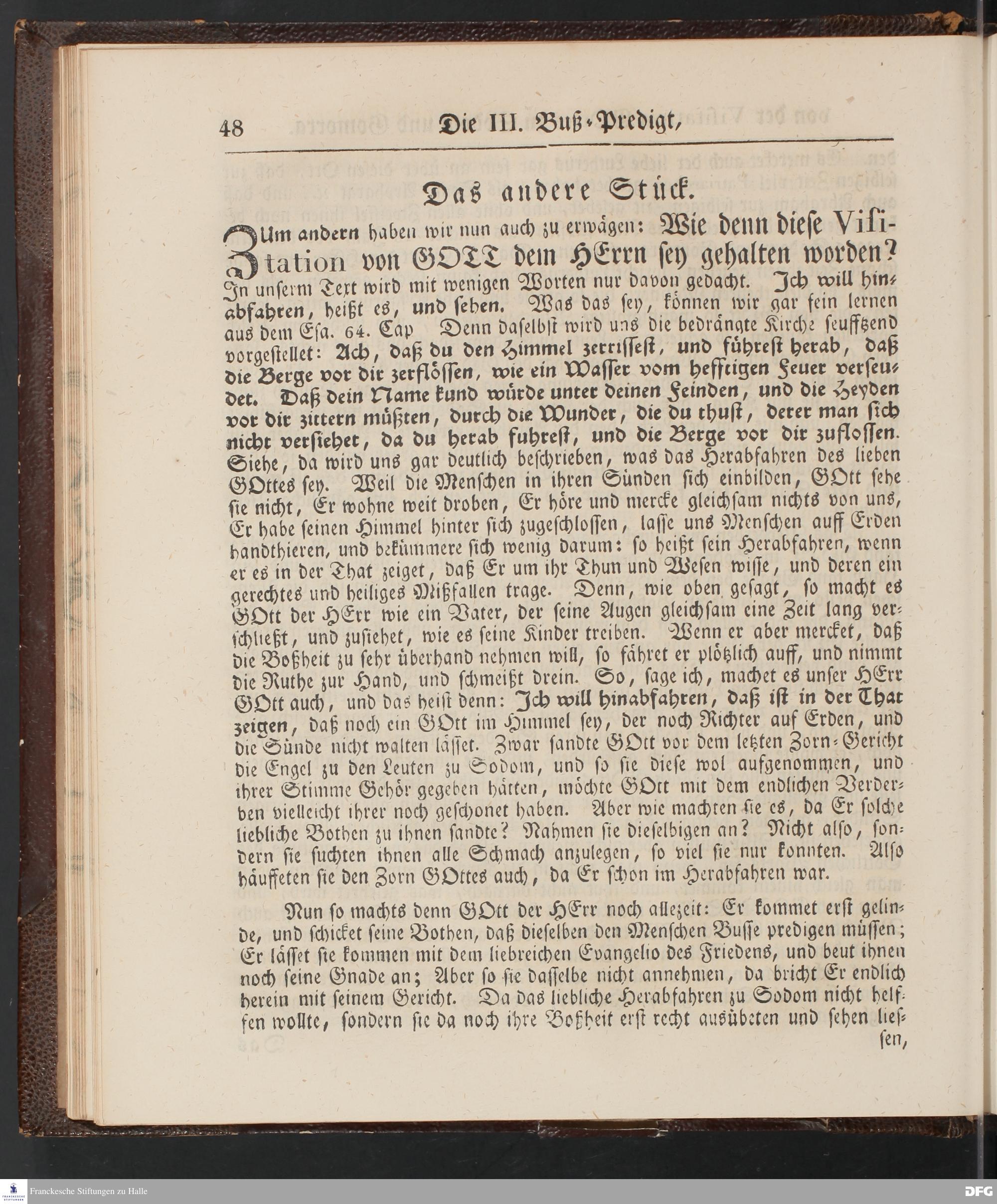 August Hermann Francke's Buß=Predigten, darin aus verschiedenen Texten Heil. Schrift deutlich gezeiget wird, wie nicht nur Unbekehrte zur wahren Buße gelangen, sondern auch die, so bekehret sind, in täglicher Buße und Gottseligkeit leben und wandeln sollen. Neue unveränderte Ausgabe. Erster [und Zweiter] Theil. Halle, Verlag der Buchhandlung des Waisenhauses. 1848.