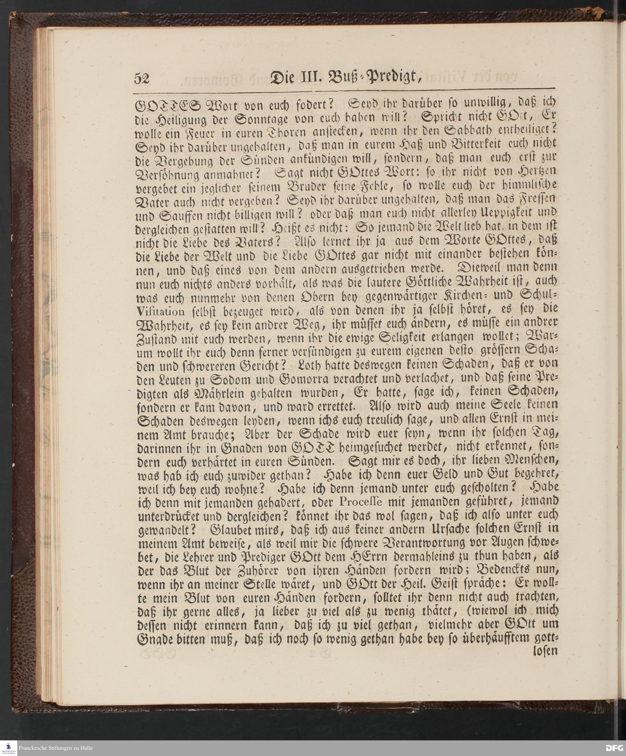 August Hermann Francke's Buß=Predigten, darin aus verschiedenen Texten Heil. Schrift deutlich gezeiget wird, wie nicht nur Unbekehrte zur wahren Buße gelangen, sondern auch die, so bekehret sind, in täglicher Buße und Gottseligkeit leben und wandeln sollen. Neue unveränderte Ausgabe. Erster [und Zweiter] Theil. Halle, Verlag der Buchhandlung des Waisenhauses. 1848.