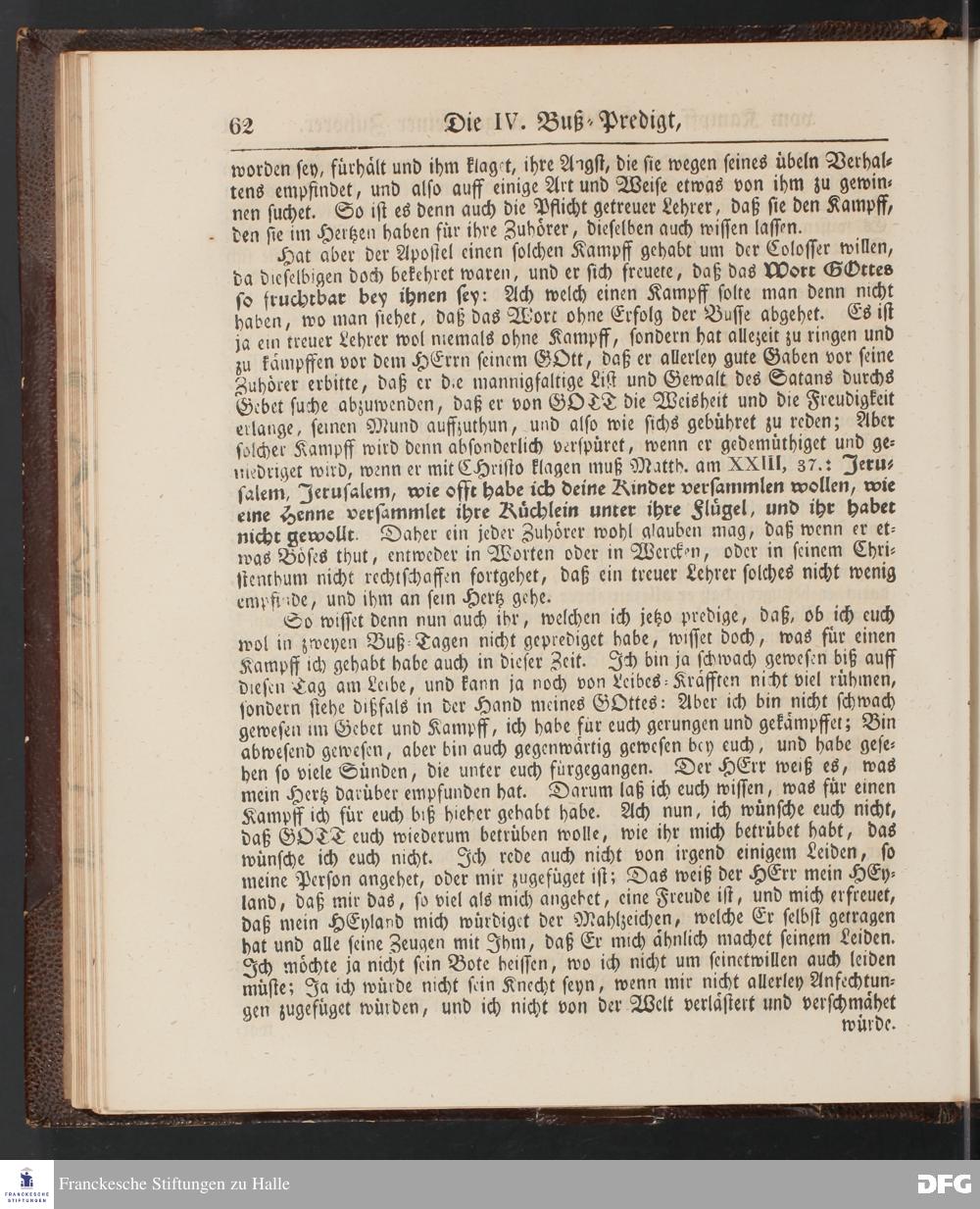 August Hermann Francke's Buß=Predigten, darin aus verschiedenen Texten Heil. Schrift deutlich gezeiget wird, wie nicht nur Unbekehrte zur wahren Buße gelangen, sondern auch die, so bekehret sind, in täglicher Buße und Gottseligkeit leben und wandeln sollen. Neue unveränderte Ausgabe. Erster [und Zweiter] Theil. Halle, Verlag der Buchhandlung des Waisenhauses. 1848.