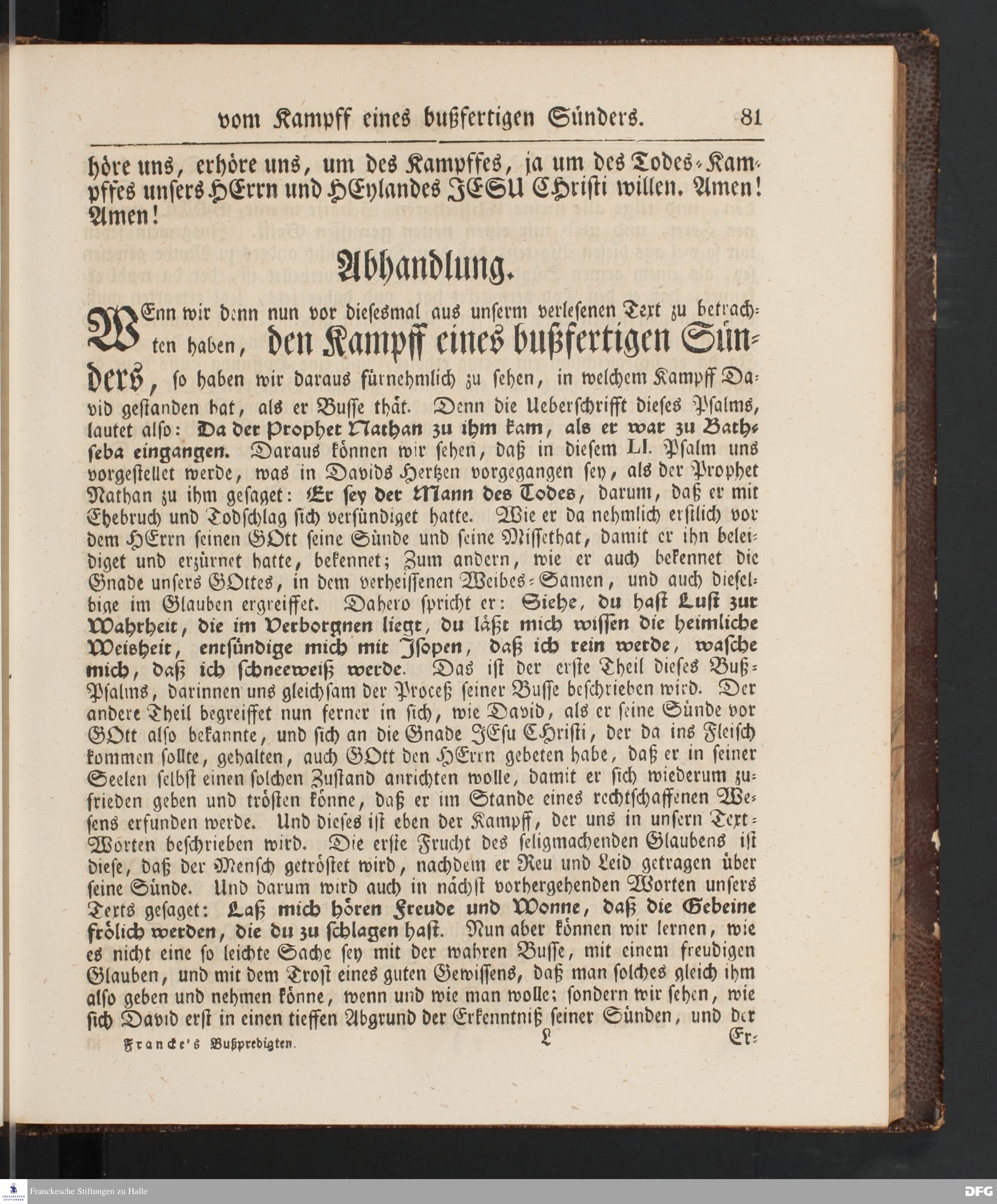 August Hermann Francke's Buß=Predigten, darin aus verschiedenen Texten Heil. Schrift deutlich gezeiget wird, wie nicht nur Unbekehrte zur wahren Buße gelangen, sondern auch die, so bekehret sind, in täglicher Buße und Gottseligkeit leben und wandeln sollen. Neue unveränderte Ausgabe. Erster [und Zweiter] Theil. Halle, Verlag der Buchhandlung des Waisenhauses. 1848.