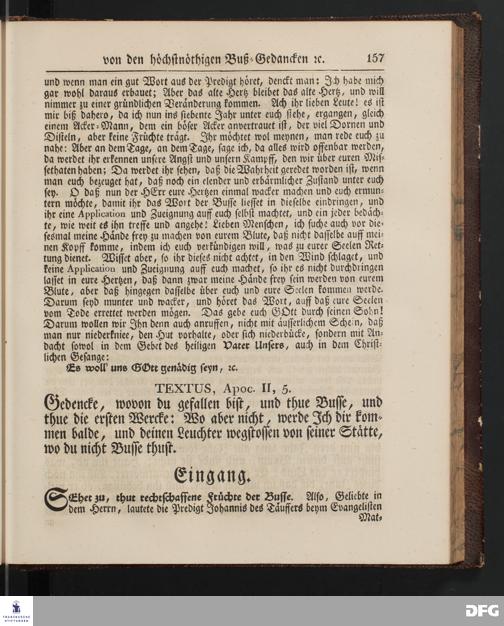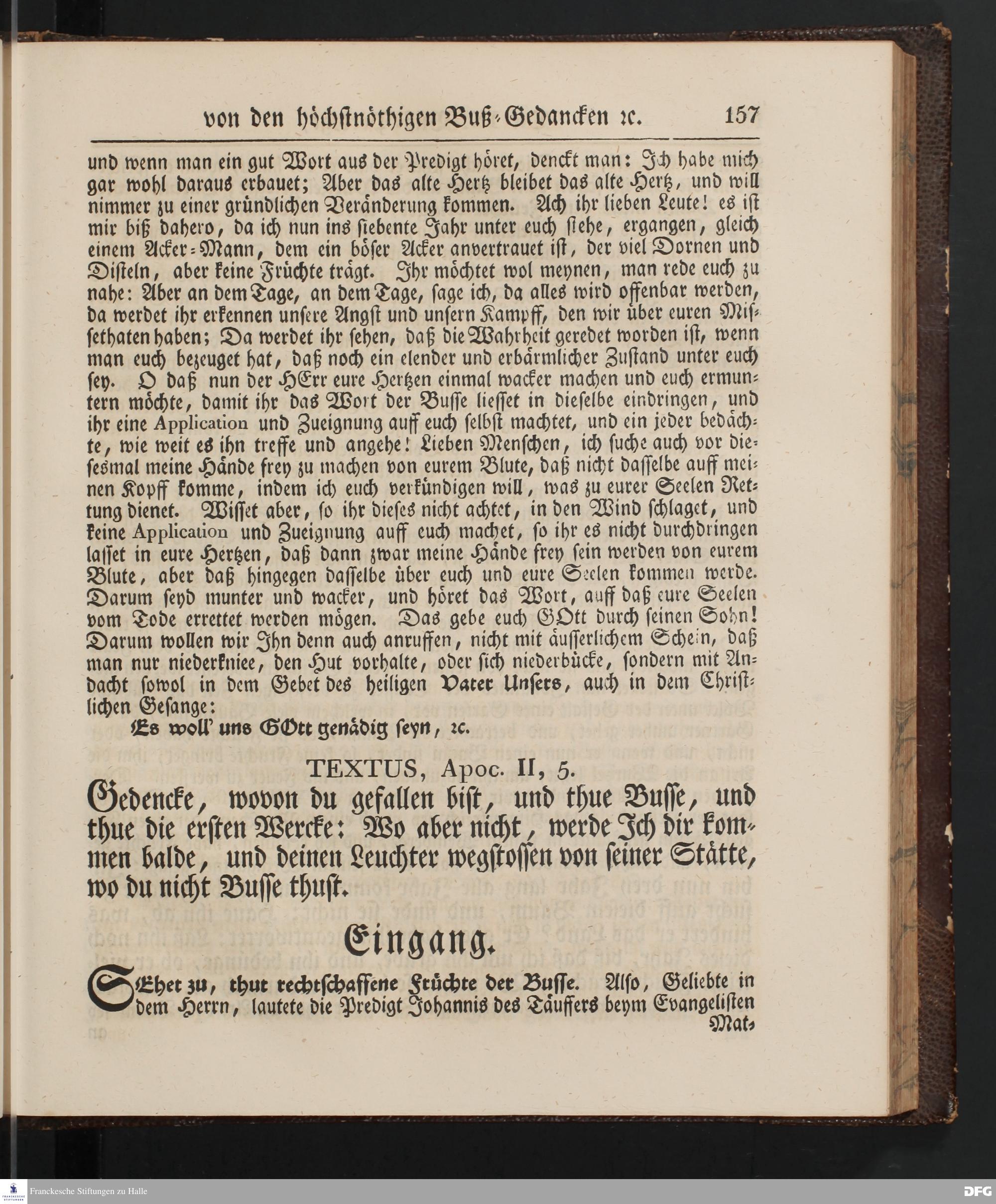 August Hermann Francke's Buß=Predigten, darin aus verschiedenen Texten Heil. Schrift deutlich gezeiget wird, wie nicht nur Unbekehrte zur wahren Buße gelangen, sondern auch die, so bekehret sind, in täglicher Buße und Gottseligkeit leben und wandeln sollen. Neue unveränderte Ausgabe. Erster [und Zweiter] Theil. Halle, Verlag der Buchhandlung des Waisenhauses. 1848.