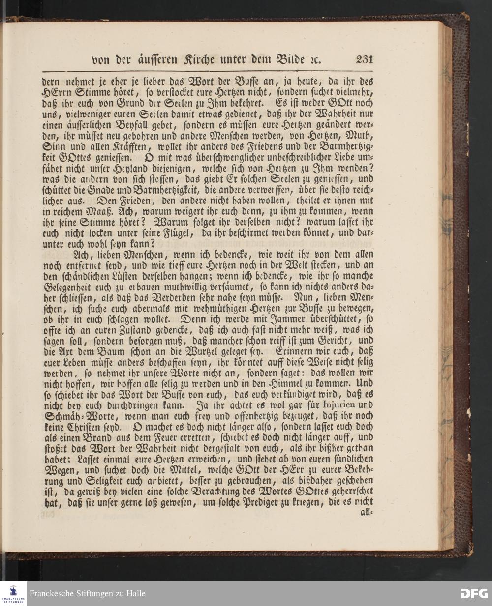 August Hermann Francke's Buß=Predigten, darin aus verschiedenen Texten Heil. Schrift deutlich gezeiget wird, wie nicht nur Unbekehrte zur wahren Buße gelangen, sondern auch die, so bekehret sind, in täglicher Buße und Gottseligkeit leben und wandeln sollen. Neue unveränderte Ausgabe. Erster [und Zweiter] Theil. Halle, Verlag der Buchhandlung des Waisenhauses. 1848.