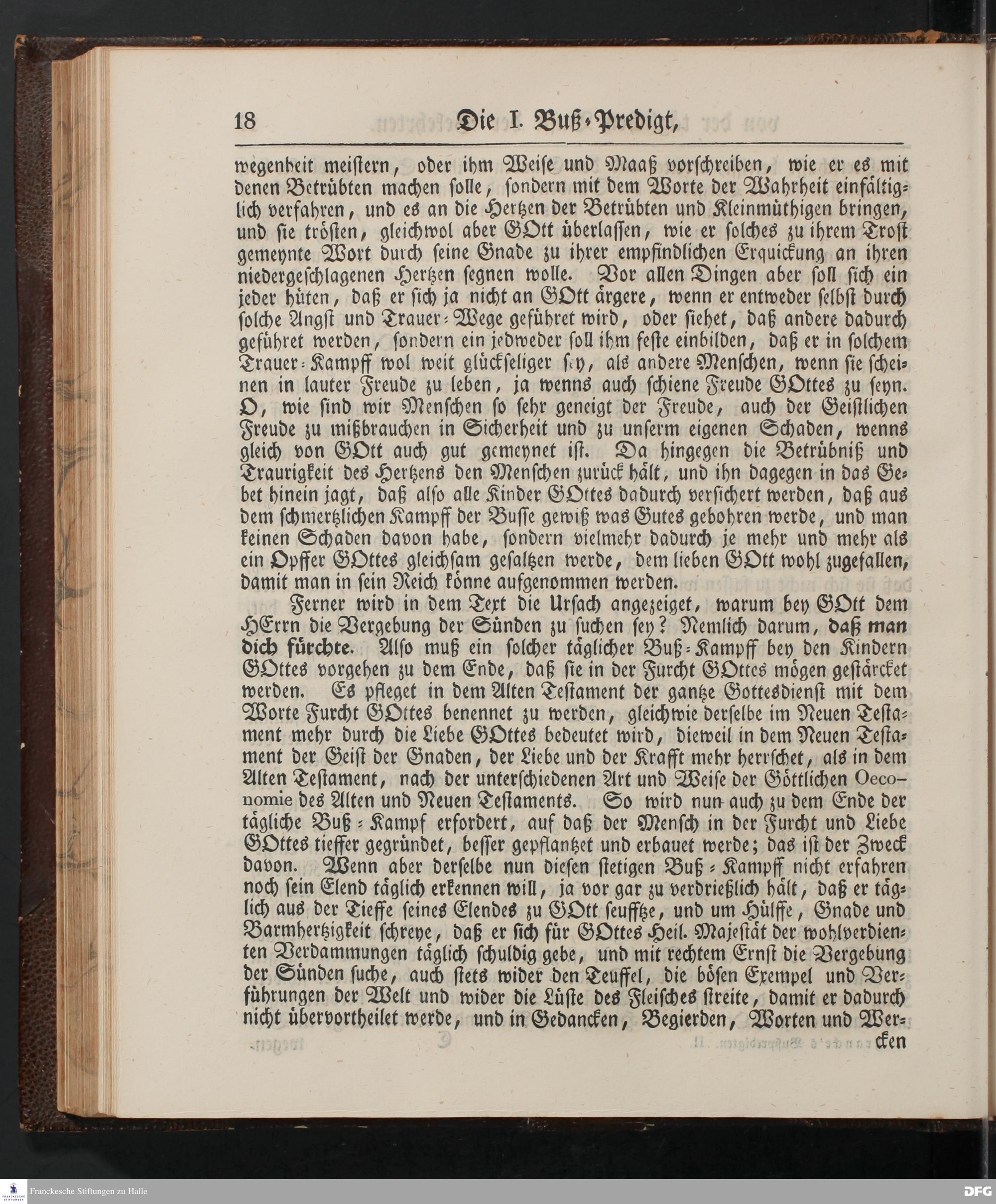 August Hermann Francke's Buß=Predigten, darin aus verschiedenen Texten Heil. Schrift deutlich gezeiget wird, wie nicht nur Unbekehrte zur wahren Buße gelangen, sondern auch die, so bekehret sind, in täglicher Buße und Gottseligkeit leben und wandeln sollen. Neue unveränderte Ausgabe. Erster [und Zweiter] Theil. Halle, Verlag der Buchhandlung des Waisenhauses. 1848.