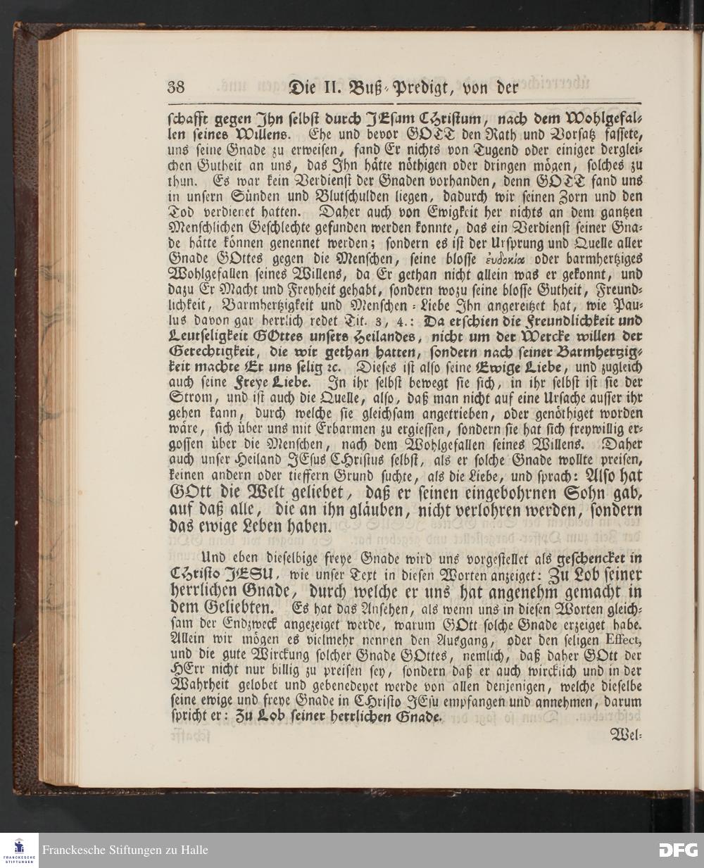 August Hermann Francke's Buß=Predigten, darin aus verschiedenen Texten Heil. Schrift deutlich gezeiget wird, wie nicht nur Unbekehrte zur wahren Buße gelangen, sondern auch die, so bekehret sind, in täglicher Buße und Gottseligkeit leben und wandeln sollen. Neue unveränderte Ausgabe. Erster [und Zweiter] Theil. Halle, Verlag der Buchhandlung des Waisenhauses. 1848.