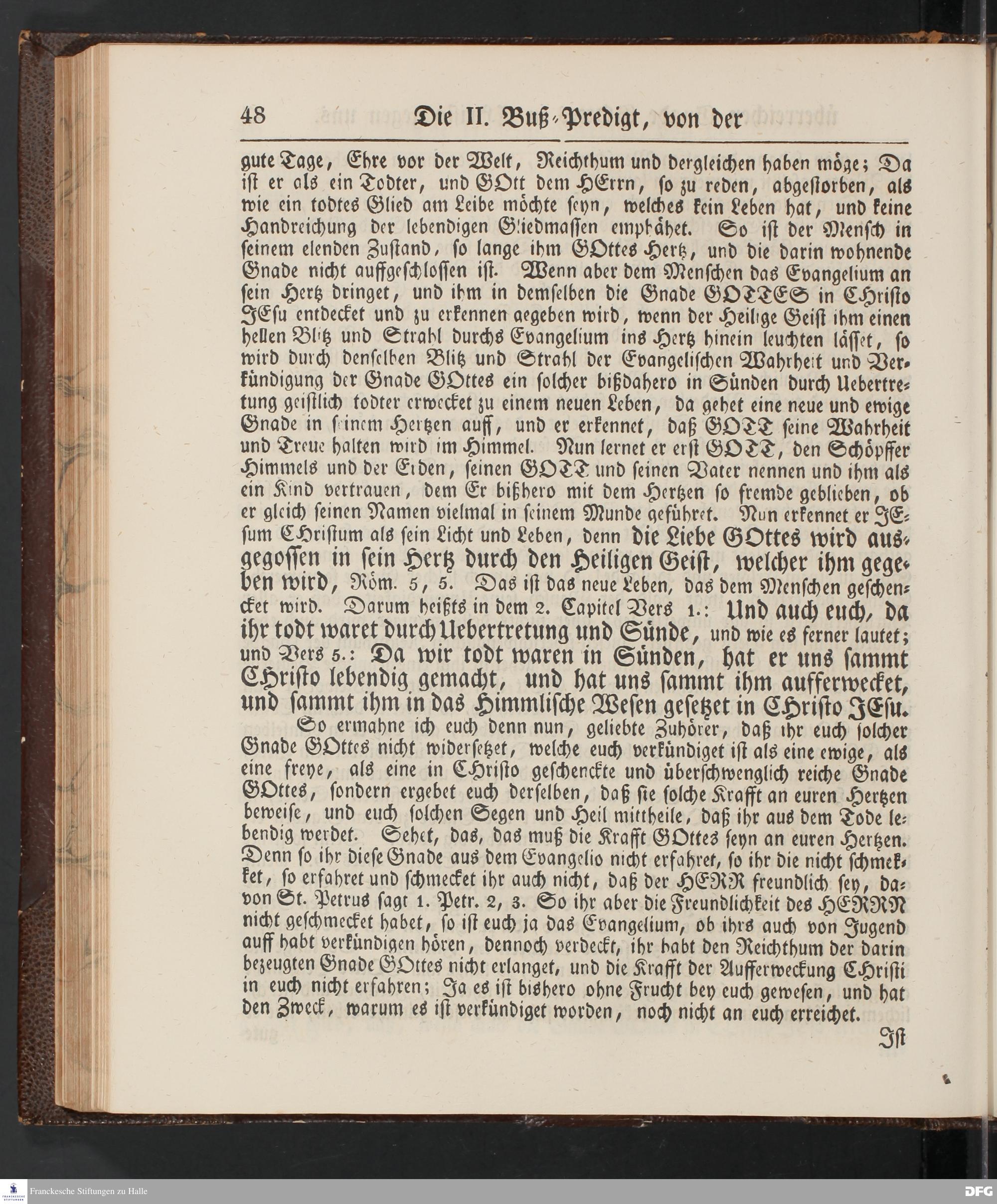 August Hermann Francke's Buß=Predigten, darin aus verschiedenen Texten Heil. Schrift deutlich gezeiget wird, wie nicht nur Unbekehrte zur wahren Buße gelangen, sondern auch die, so bekehret sind, in täglicher Buße und Gottseligkeit leben und wandeln sollen. Neue unveränderte Ausgabe. Erster [und Zweiter] Theil. Halle, Verlag der Buchhandlung des Waisenhauses. 1848.