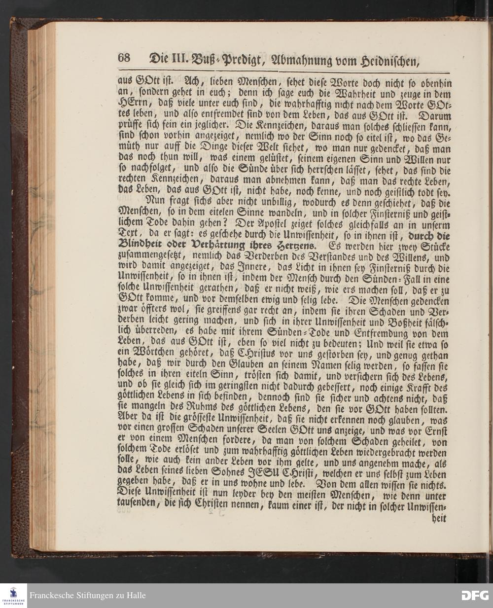 August Hermann Francke's Buß=Predigten, darin aus verschiedenen Texten Heil. Schrift deutlich gezeiget wird, wie nicht nur Unbekehrte zur wahren Buße gelangen, sondern auch die, so bekehret sind, in täglicher Buße und Gottseligkeit leben und wandeln sollen. Neue unveränderte Ausgabe. Erster [und Zweiter] Theil. Halle, Verlag der Buchhandlung des Waisenhauses. 1848.