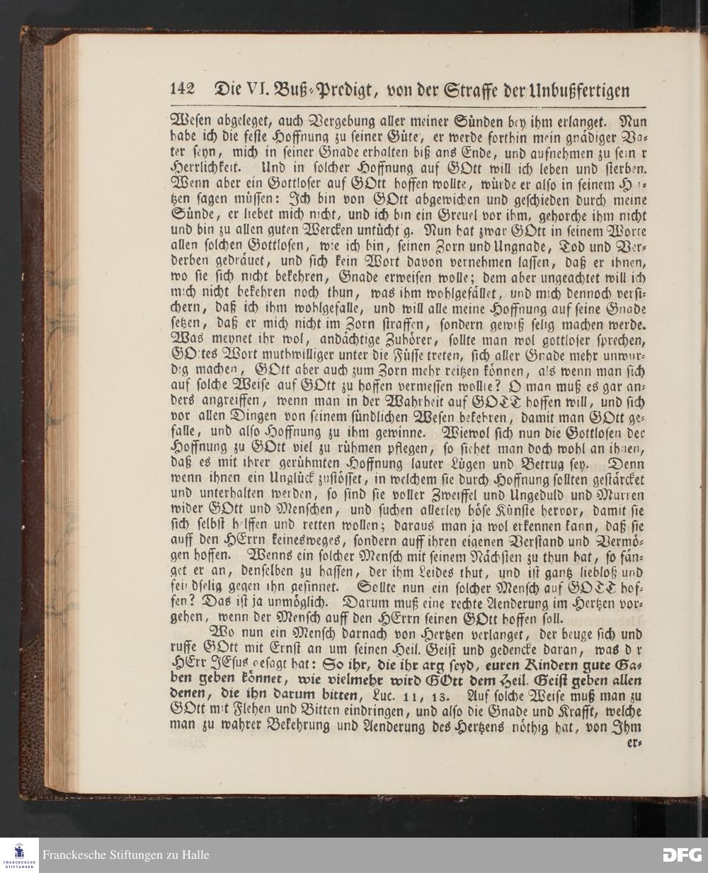 August Hermann Francke's Buß=Predigten, darin aus verschiedenen Texten Heil. Schrift deutlich gezeiget wird, wie nicht nur Unbekehrte zur wahren Buße gelangen, sondern auch die, so bekehret sind, in täglicher Buße und Gottseligkeit leben und wandeln sollen. Neue unveränderte Ausgabe. Erster [und Zweiter] Theil. Halle, Verlag der Buchhandlung des Waisenhauses. 1848.