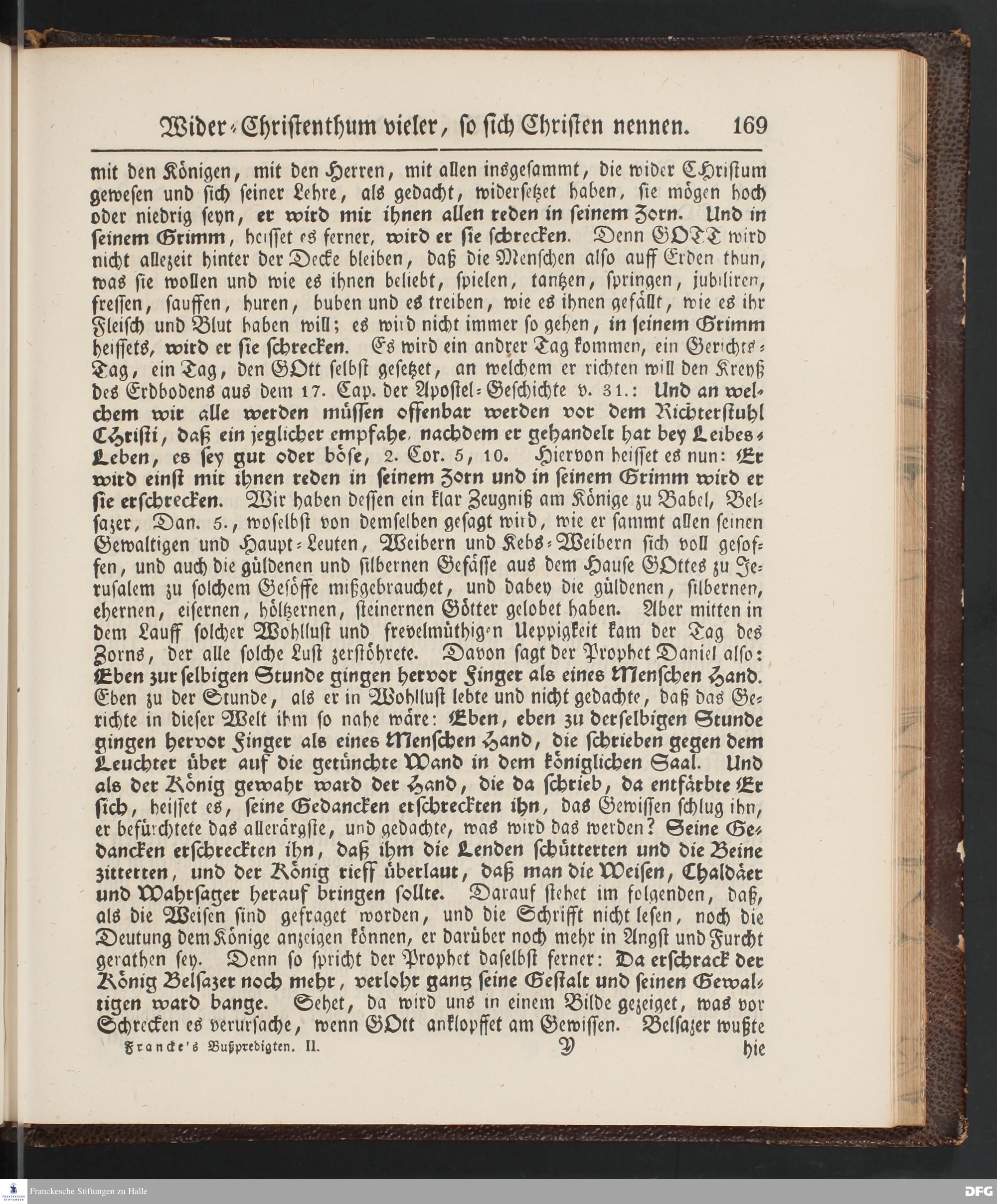 August Hermann Francke's Buß=Predigten, darin aus verschiedenen Texten Heil. Schrift deutlich gezeiget wird, wie nicht nur Unbekehrte zur wahren Buße gelangen, sondern auch die, so bekehret sind, in täglicher Buße und Gottseligkeit leben und wandeln sollen. Neue unveränderte Ausgabe. Erster [und Zweiter] Theil. Halle, Verlag der Buchhandlung des Waisenhauses. 1848.