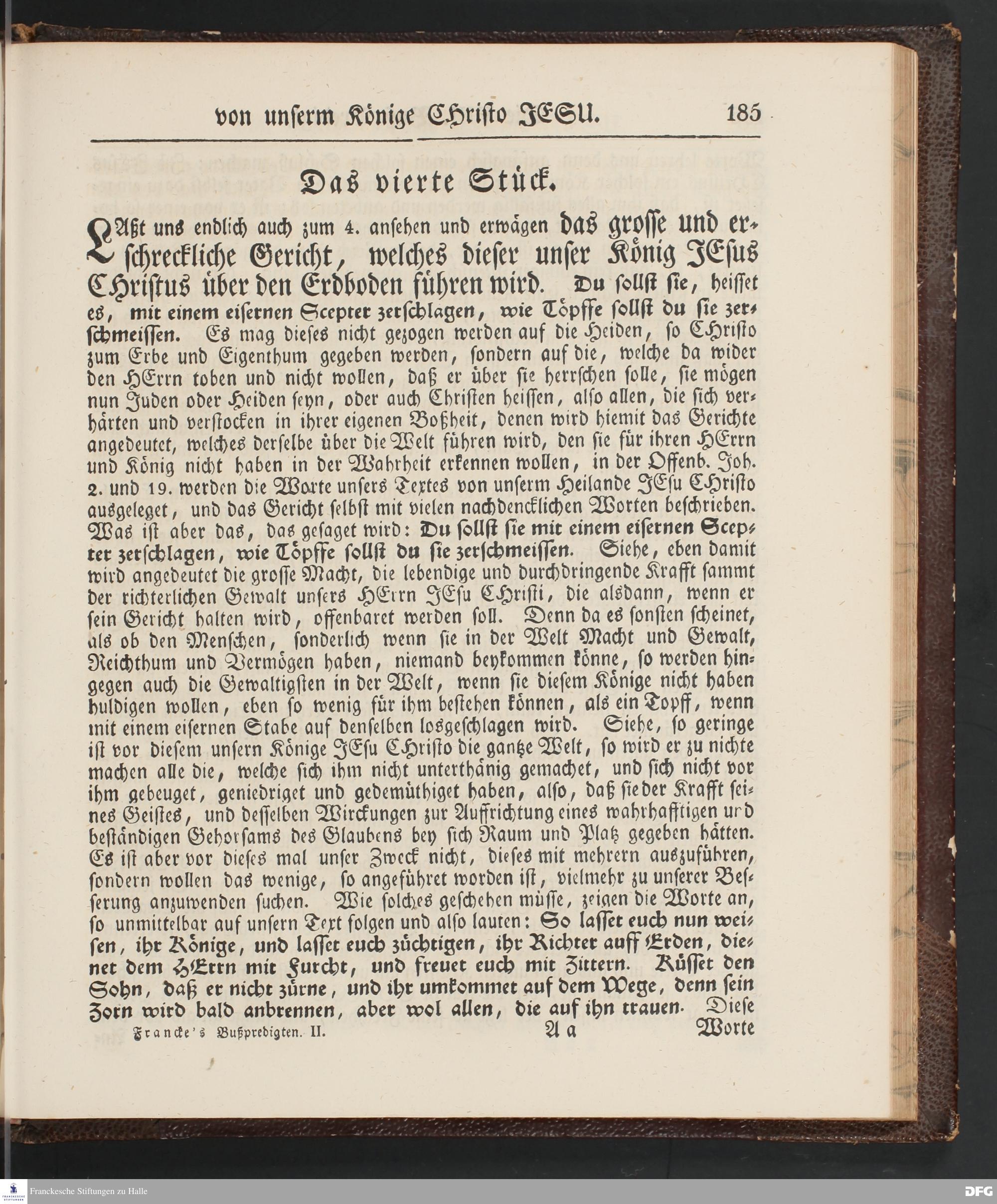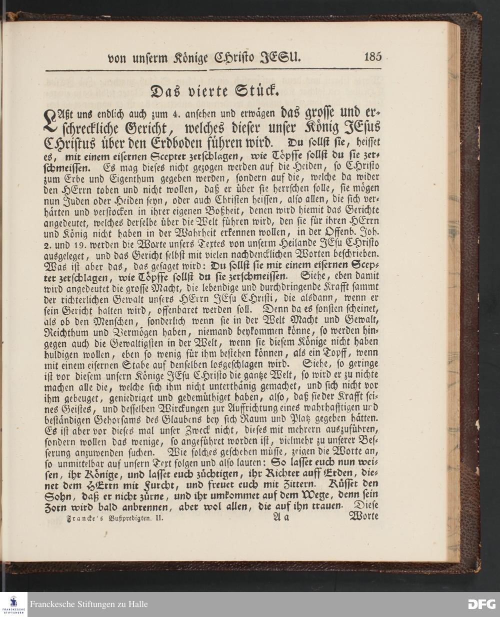August Hermann Francke's Buß=Predigten, darin aus verschiedenen Texten Heil. Schrift deutlich gezeiget wird, wie nicht nur Unbekehrte zur wahren Buße gelangen, sondern auch die, so bekehret sind, in täglicher Buße und Gottseligkeit leben und wandeln sollen. Neue unveränderte Ausgabe. Erster [und Zweiter] Theil. Halle, Verlag der Buchhandlung des Waisenhauses. 1848.