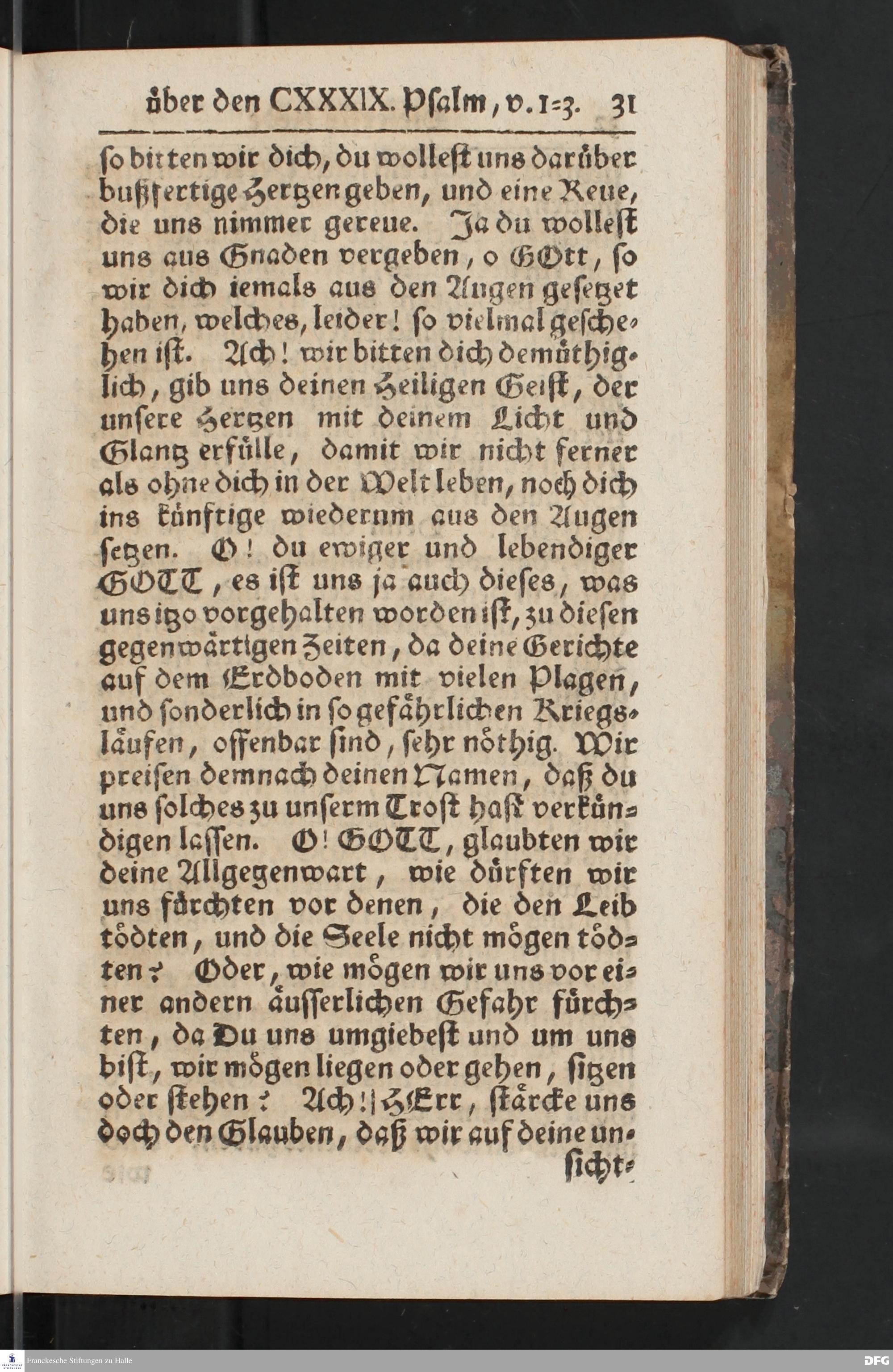 August Hermann Franckens, Weyl.Prof.Theol.Past.Ulr.und Schol. Erklärung Des hundert und neun und dreyßigsten Psalms / Auf Verlangen besonders herausgegeben Von Gotthilf August Francken, S.Theol.Prof.Ord.der ersten Dioeces des Saal=Creyses Insp.u.Pred.zur L.Fr. Andere Auflage. HALLE, In Verlegung des Wäysenhauses, 1739.