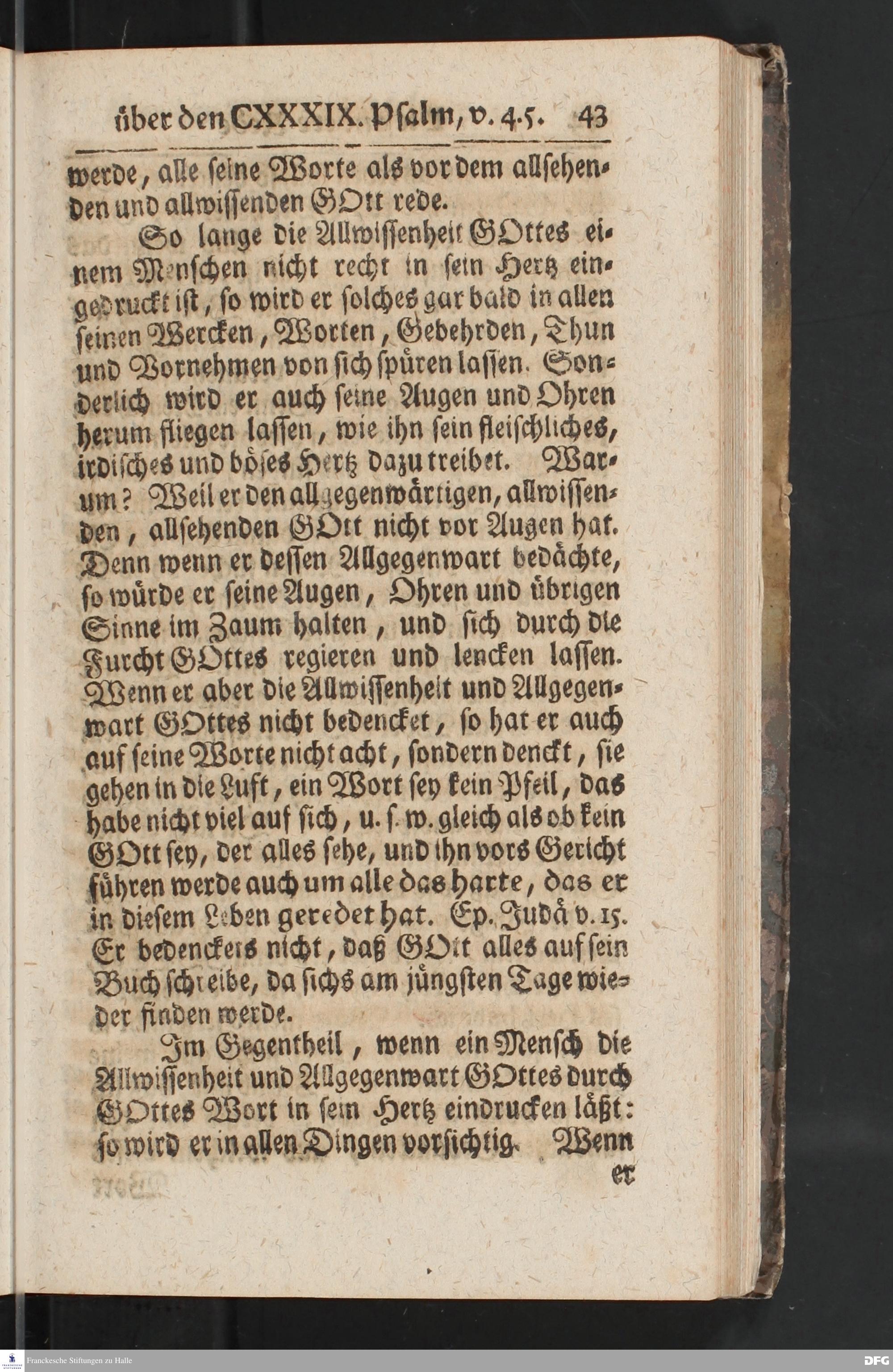 August Hermann Franckens, Weyl.Prof.Theol.Past.Ulr.und Schol. Erklärung Des hundert und neun und dreyßigsten Psalms / Auf Verlangen besonders herausgegeben Von Gotthilf August Francken, S.Theol.Prof.Ord.der ersten Dioeces des Saal=Creyses Insp.u.Pred.zur L.Fr. Andere Auflage. HALLE, In Verlegung des Wäysenhauses, 1739.