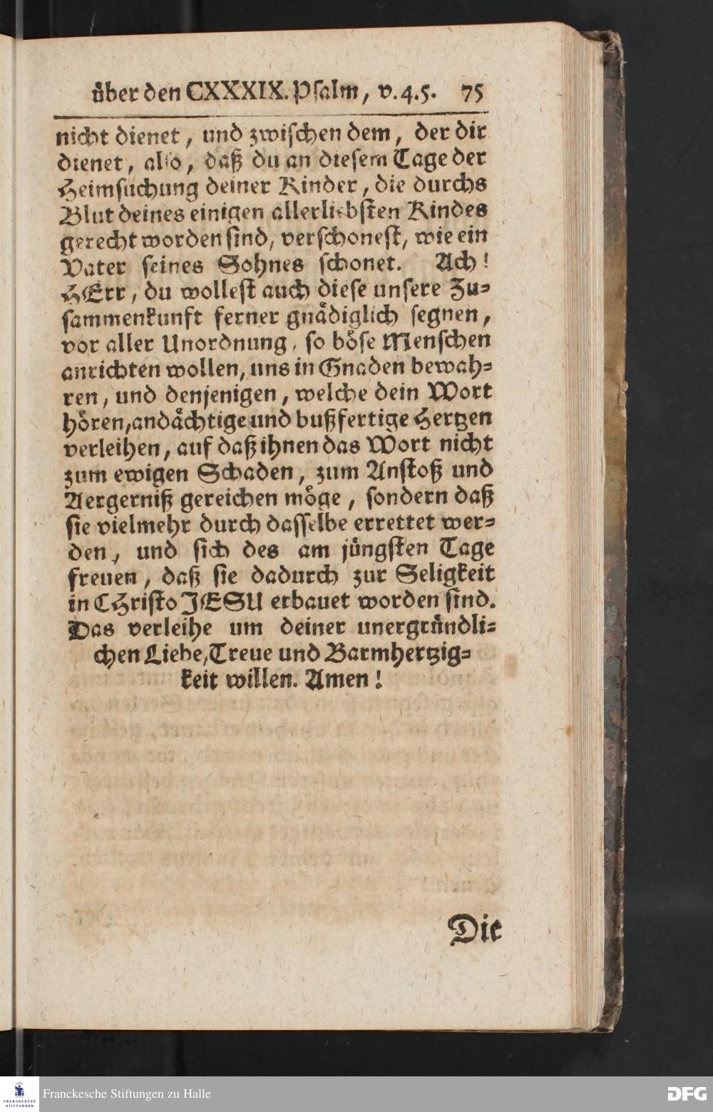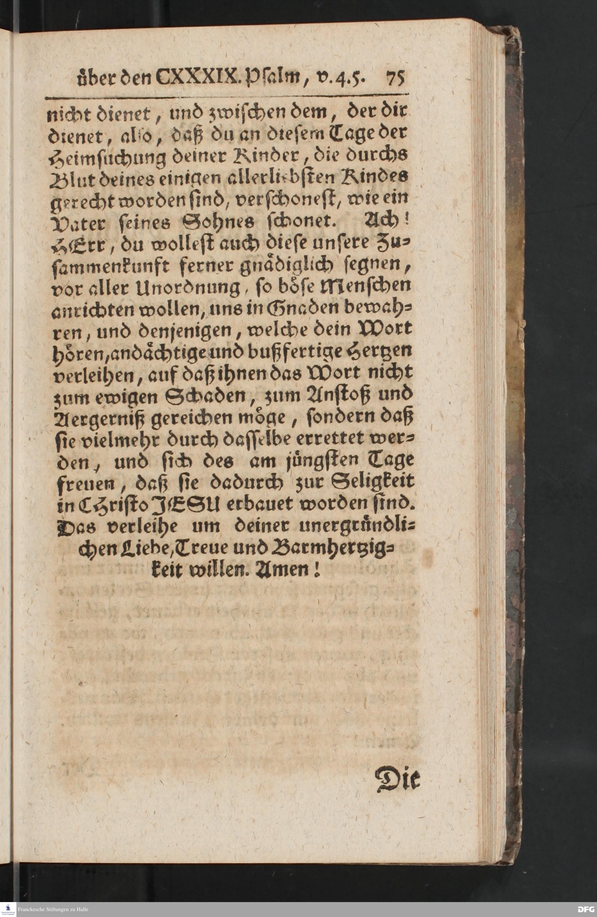 August Hermann Franckens, Weyl.Prof.Theol.Past.Ulr.und Schol. Erklärung Des hundert und neun und dreyßigsten Psalms / Auf Verlangen besonders herausgegeben Von Gotthilf August Francken, S.Theol.Prof.Ord.der ersten Dioeces des Saal=Creyses Insp.u.Pred.zur L.Fr. Andere Auflage. HALLE, In Verlegung des Wäysenhauses, 1739.