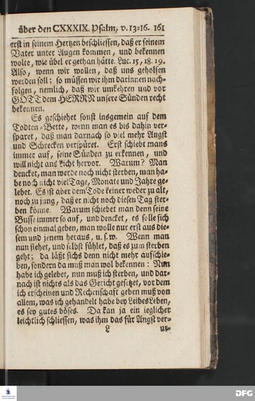 August Hermann Franckens, Weyl.Prof.Theol.Past.Ulr.und Schol. Erklärung Des hundert und neun und dreyßigsten Psalms / Auf Verlangen besonders herausgegeben Von Gotthilf August Francken, S.Theol.Prof.Ord.der ersten Dioeces des Saal=Creyses Insp.u.Pred.zur L.Fr. Andere Auflage. HALLE, In Verlegung des Wäysenhauses, 1739.