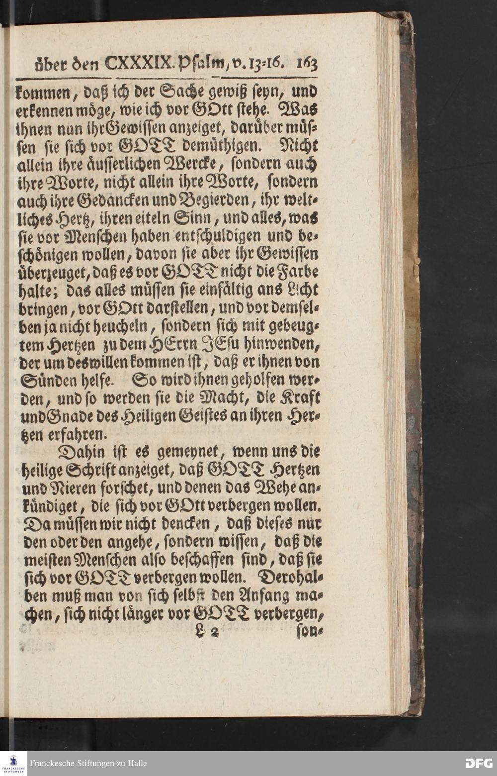 August Hermann Franckens, Weyl.Prof.Theol.Past.Ulr.und Schol. Erklärung Des hundert und neun und dreyßigsten Psalms / Auf Verlangen besonders herausgegeben Von Gotthilf August Francken, S.Theol.Prof.Ord.der ersten Dioeces des Saal=Creyses Insp.u.Pred.zur L.Fr. Andere Auflage. HALLE, In Verlegung des Wäysenhauses, 1739.