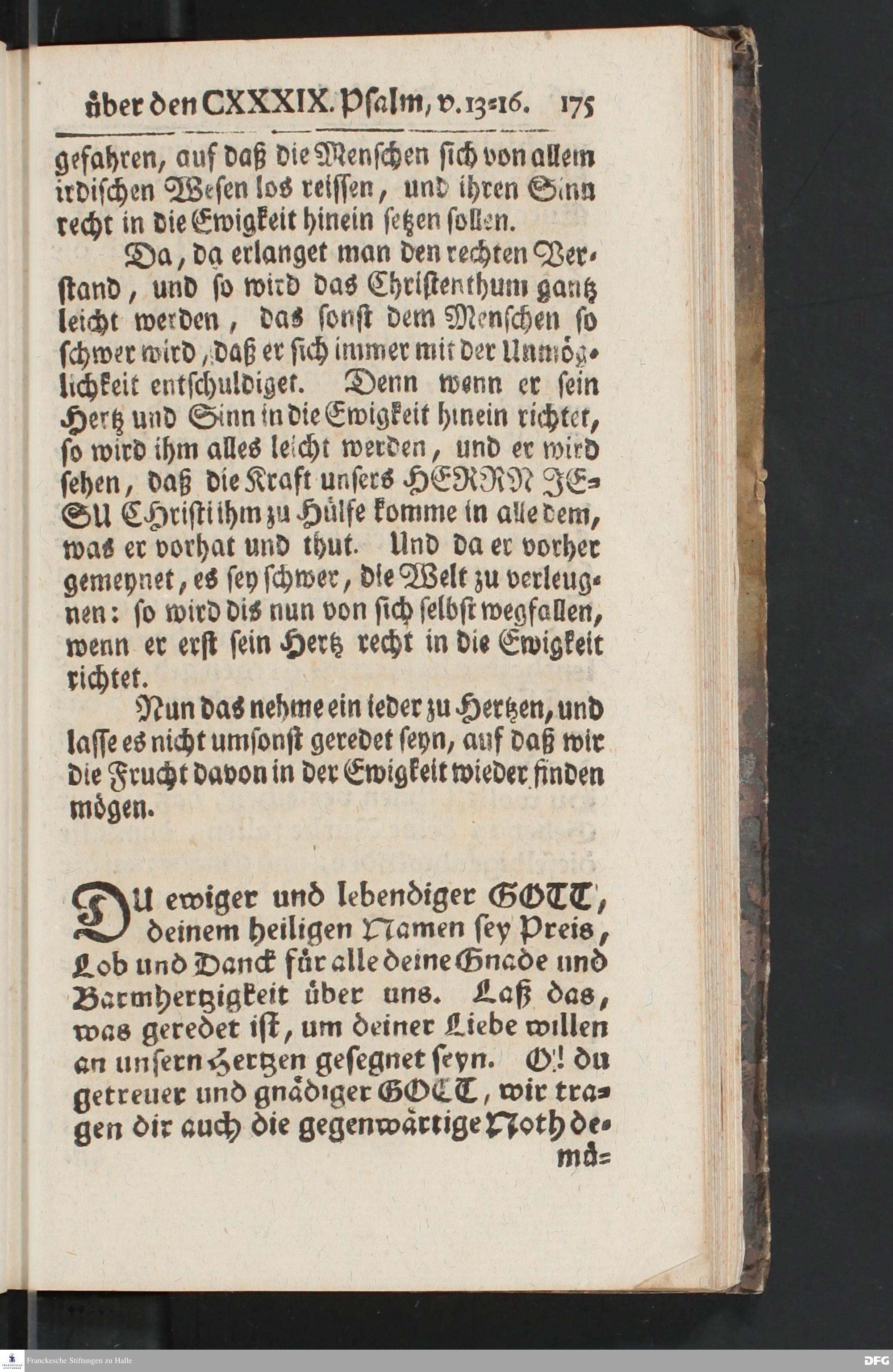 August Hermann Franckens, Weyl.Prof.Theol.Past.Ulr.und Schol. Erklärung Des hundert und neun und dreyßigsten Psalms / Auf Verlangen besonders herausgegeben Von Gotthilf August Francken, S.Theol.Prof.Ord.der ersten Dioeces des Saal=Creyses Insp.u.Pred.zur L.Fr. Andere Auflage. HALLE, In Verlegung des Wäysenhauses, 1739.