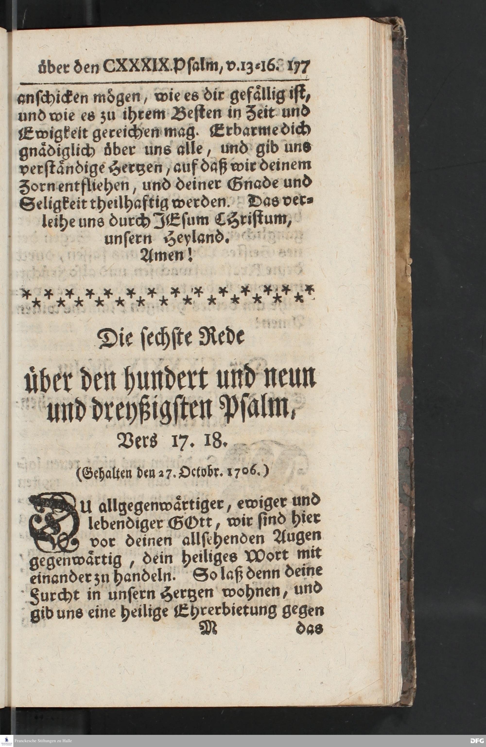 August Hermann Franckens, Weyl.Prof.Theol.Past.Ulr.und Schol. Erklärung Des hundert und neun und dreyßigsten Psalms / Auf Verlangen besonders herausgegeben Von Gotthilf August Francken, S.Theol.Prof.Ord.der ersten Dioeces des Saal=Creyses Insp.u.Pred.zur L.Fr. Andere Auflage. HALLE, In Verlegung des Wäysenhauses, 1739.