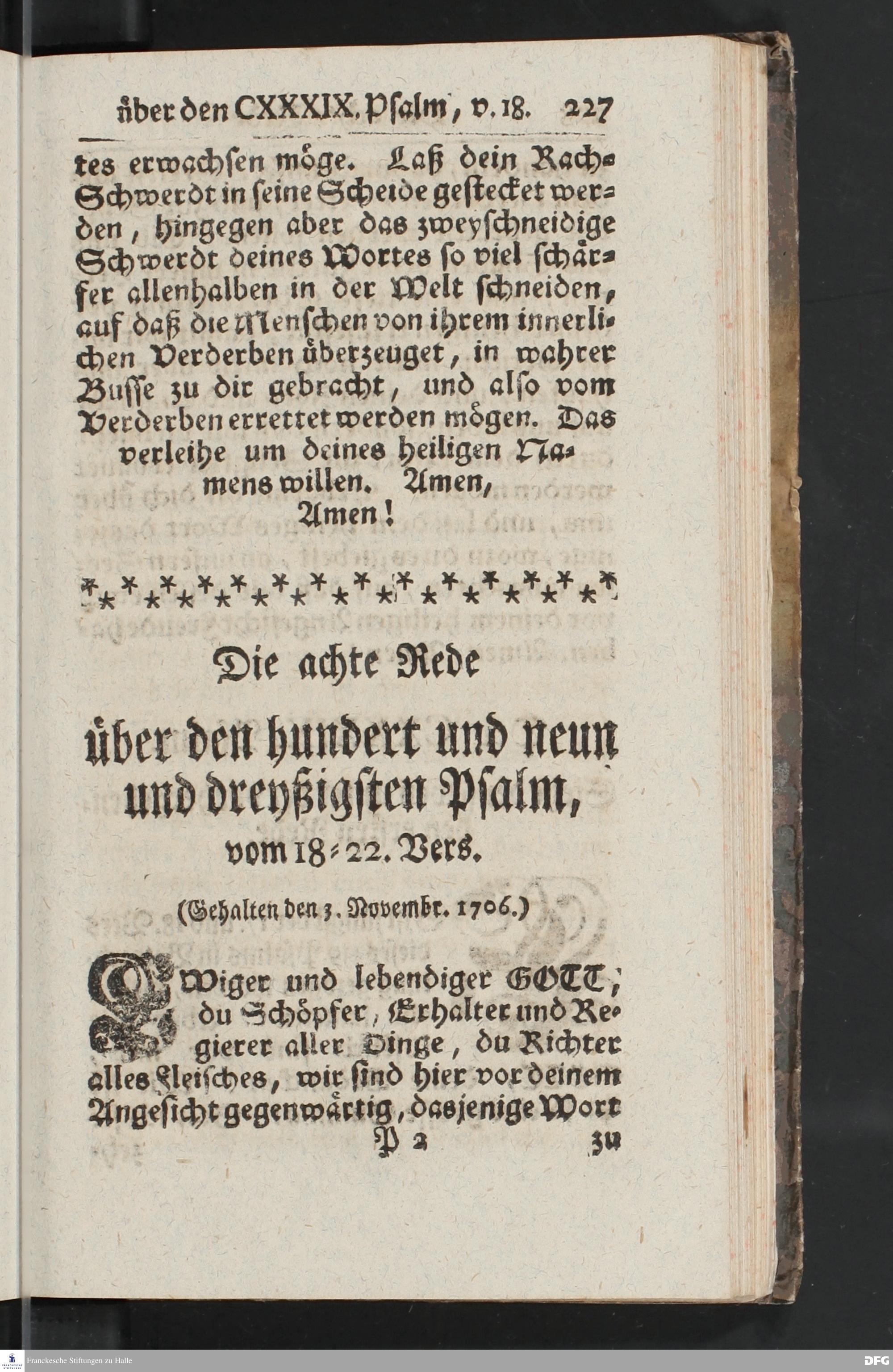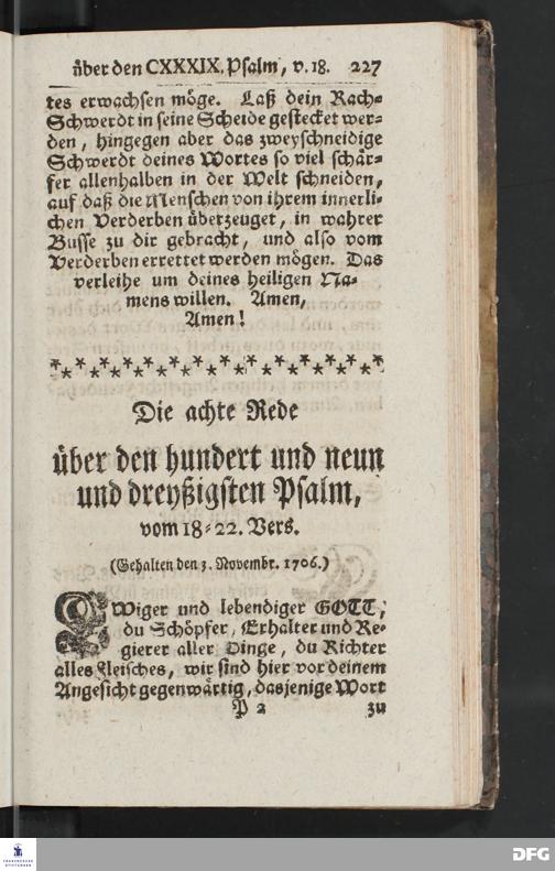 August Hermann Franckens, Weyl.Prof.Theol.Past.Ulr.und Schol. Erklärung Des hundert und neun und dreyßigsten Psalms / Auf Verlangen besonders herausgegeben Von Gotthilf August Francken, S.Theol.Prof.Ord.der ersten Dioeces des Saal=Creyses Insp.u.Pred.zur L.Fr. Andere Auflage. HALLE, In Verlegung des Wäysenhauses, 1739.