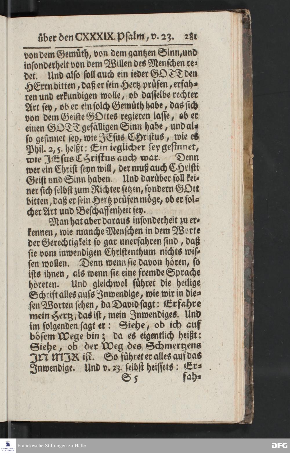 August Hermann Franckens, Weyl.Prof.Theol.Past.Ulr.und Schol. Erklärung Des hundert und neun und dreyßigsten Psalms / Auf Verlangen besonders herausgegeben Von Gotthilf August Francken, S.Theol.Prof.Ord.der ersten Dioeces des Saal=Creyses Insp.u.Pred.zur L.Fr. Andere Auflage. HALLE, In Verlegung des Wäysenhauses, 1739.