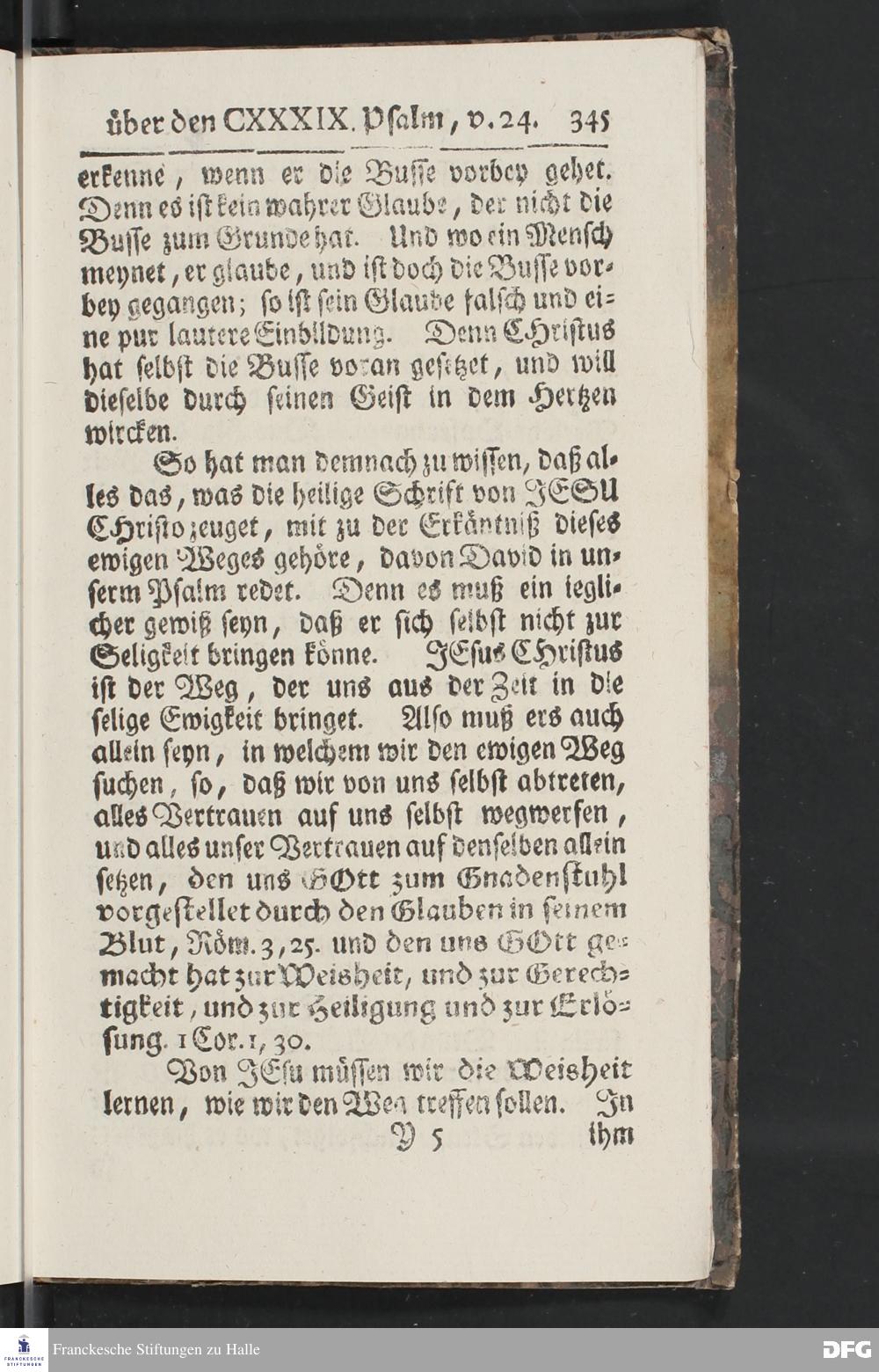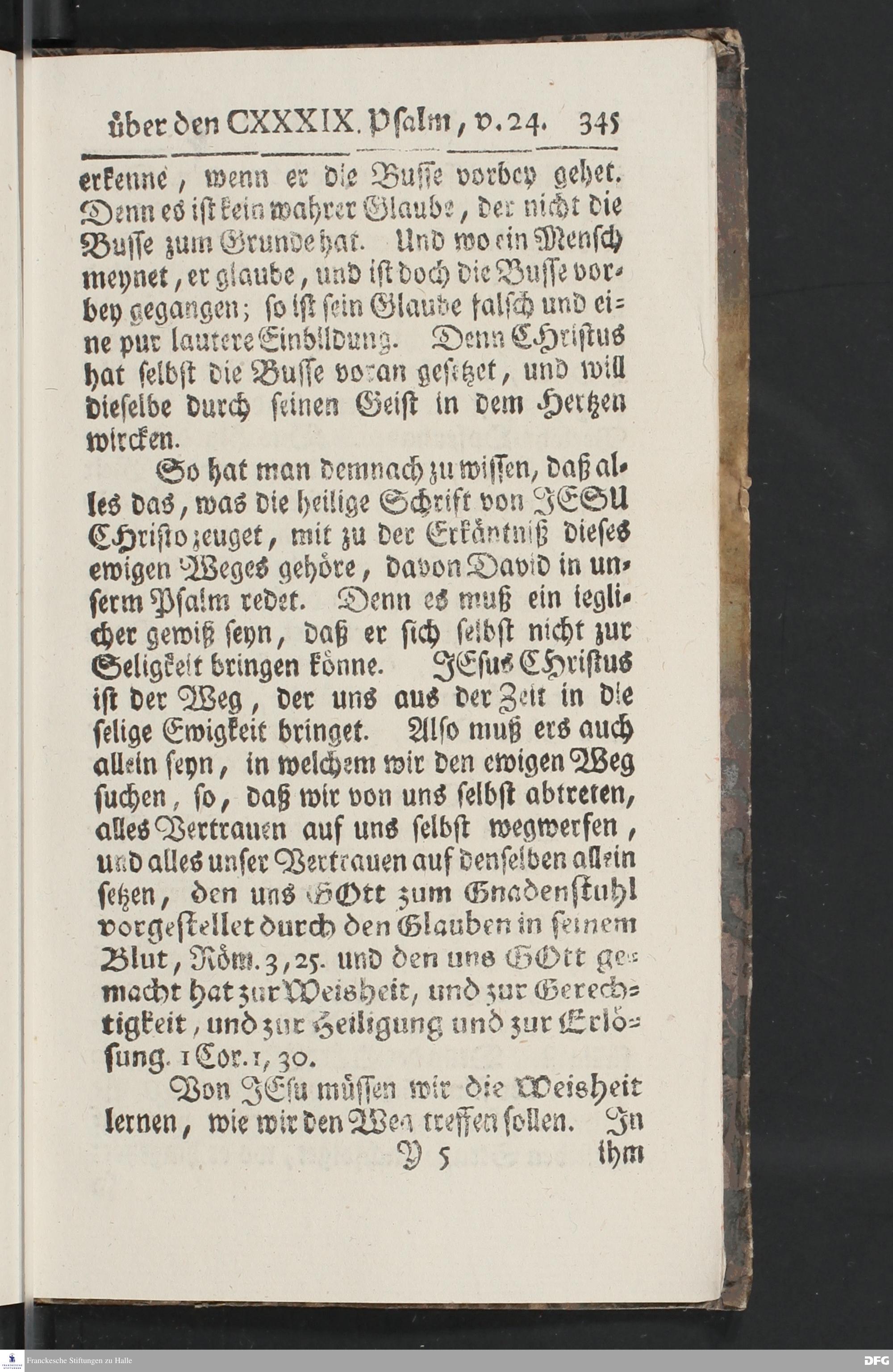 August Hermann Franckens, Weyl.Prof.Theol.Past.Ulr.und Schol. Erklärung Des hundert und neun und dreyßigsten Psalms / Auf Verlangen besonders herausgegeben Von Gotthilf August Francken, S.Theol.Prof.Ord.der ersten Dioeces des Saal=Creyses Insp.u.Pred.zur L.Fr. Andere Auflage. HALLE, In Verlegung des Wäysenhauses, 1739.
