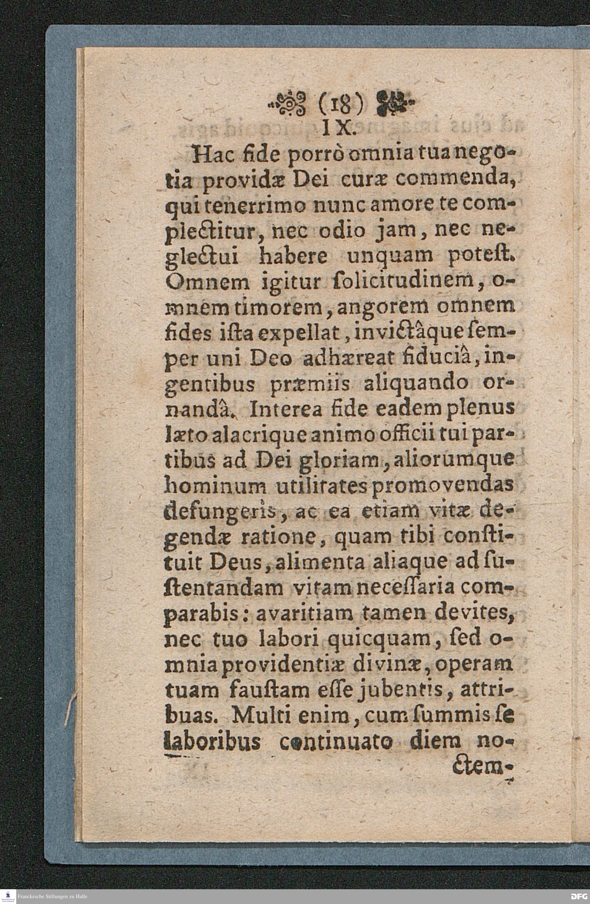 M. AUGUSTI HERMANNI FRANCKII, Graec.& Or.Lingg.Profess.Publ.atque Glauchensis Ecclesiae Pastoris, BREVIS ADHORTATIO AD VITAM CHRISTIANE AGENDAM, è Germanico in Latinum conversa à J[ohann] G[eorg] L[ubach?]. Halae Magdeb. Anno 1697.