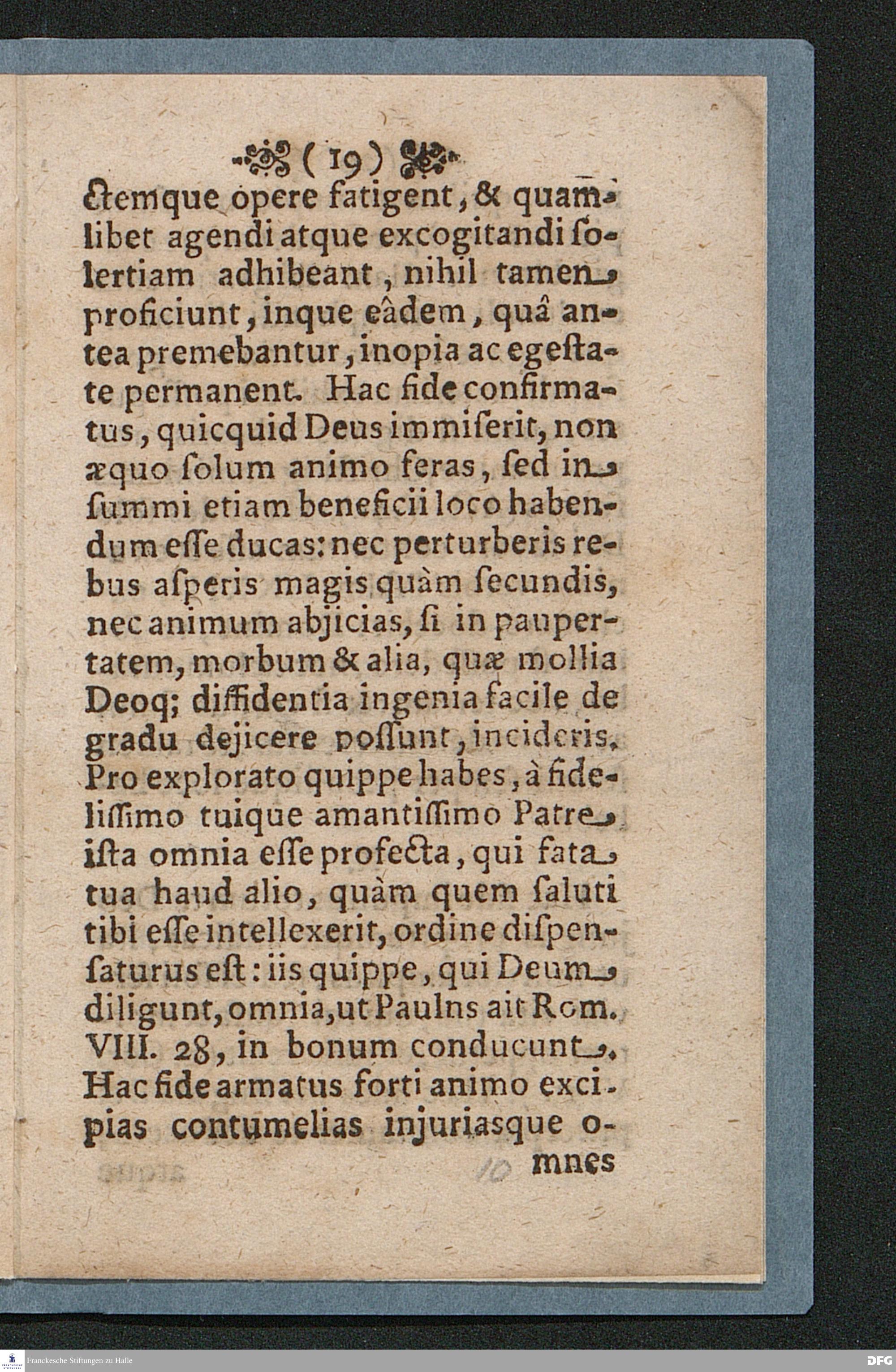 M. AUGUSTI HERMANNI FRANCKII, Graec.& Or.Lingg.Profess.Publ.atque Glauchensis Ecclesiae Pastoris, BREVIS ADHORTATIO AD VITAM CHRISTIANE AGENDAM, è Germanico in Latinum conversa à J[ohann] G[eorg] L[ubach?]. Halae Magdeb. Anno 1697.