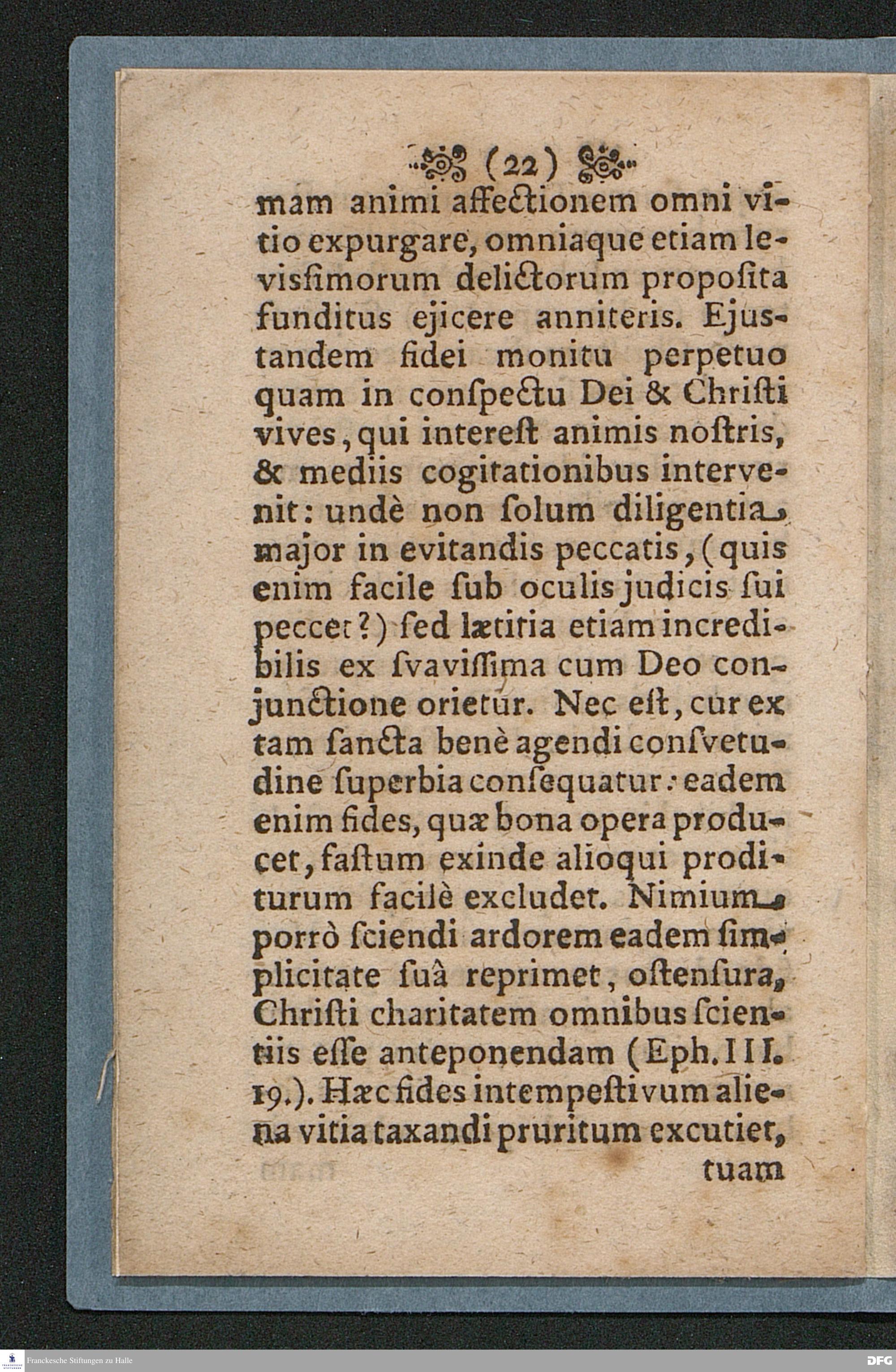M. AUGUSTI HERMANNI FRANCKII, Graec.& Or.Lingg.Profess.Publ.atque Glauchensis Ecclesiae Pastoris, BREVIS ADHORTATIO AD VITAM CHRISTIANE AGENDAM, è Germanico in Latinum conversa à J[ohann] G[eorg] L[ubach?]. Halae Magdeb. Anno 1697.