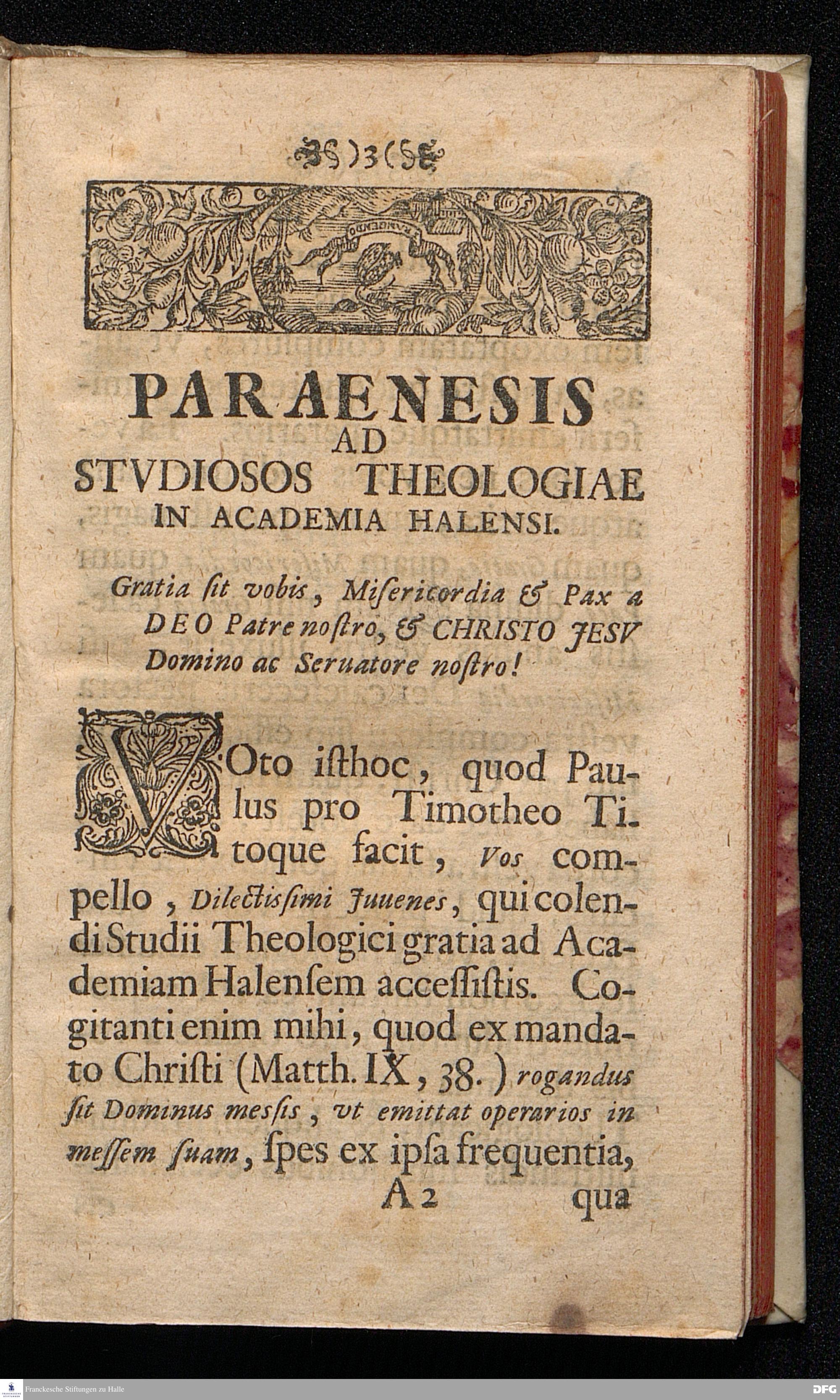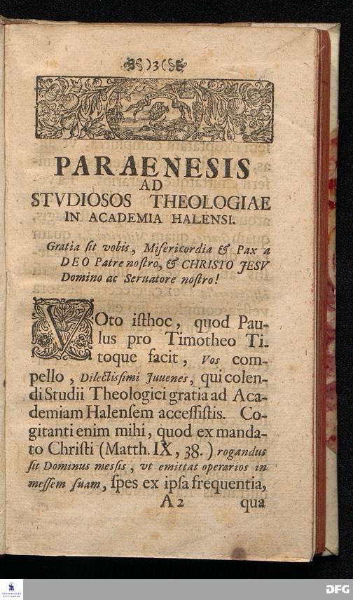 METHODUS EXERCITATIONUM BIBLICARUM, QVAE CONSILIO ET AUCTORITATE ORDINIS THEOLOGICI IN ACADEMIA HALENSI Inter THEOLOGIAE STUDIOSOS, vt ea, quæ discunt, ad praxin viuam & futurum etiam vsum ministerialem perpetuo referant, & adhuc Institutæ, & imposterum instituendæ sunt, Præmissa ad Studiosos Parænesi, delineata ab AUGUSTO HERM. FRANKIO, SS.Theol.Profess.Ordin. Editio Secunda. HALAE, Typis ORPHANOTROPHII, An. MDCCVII.