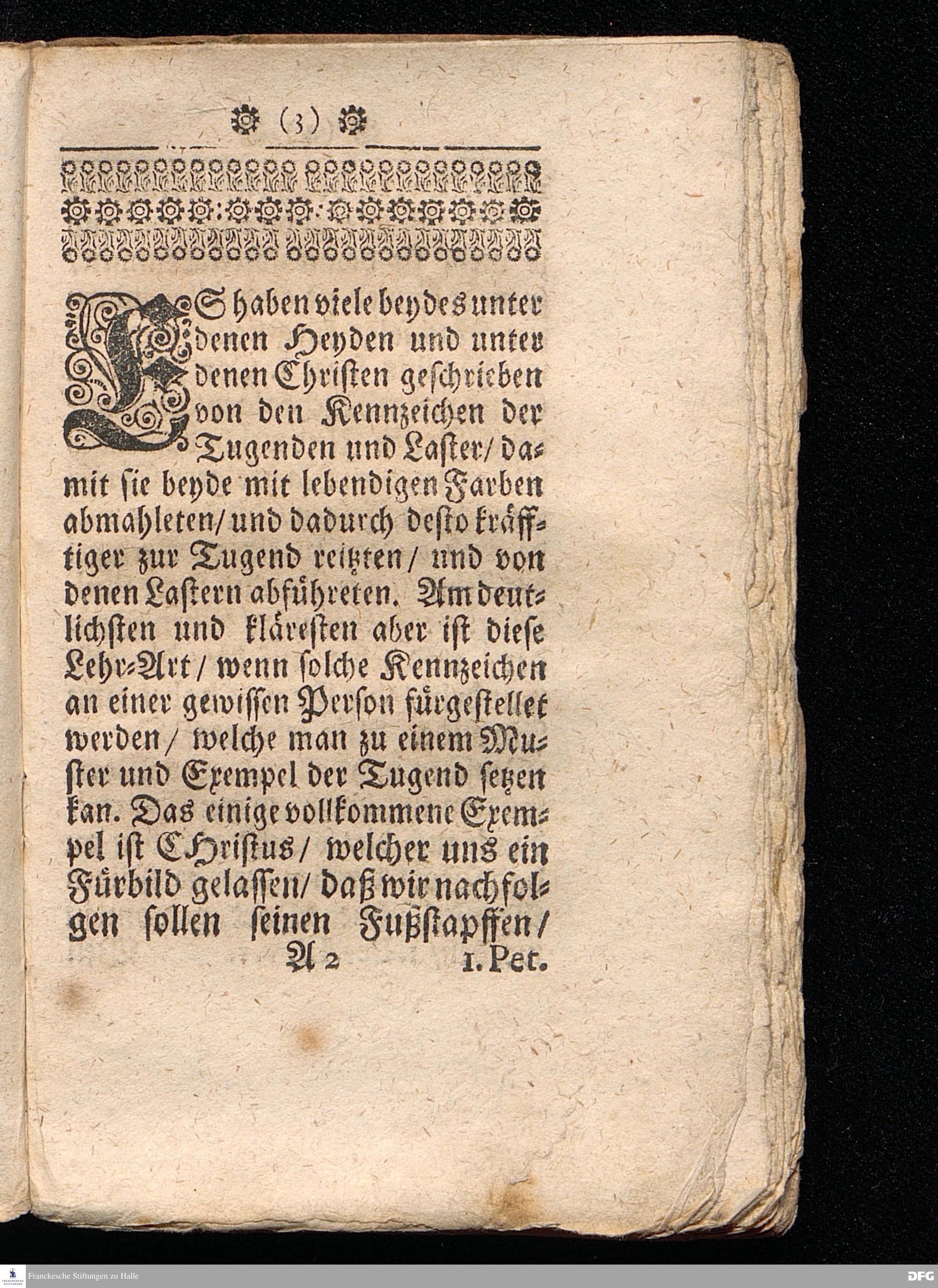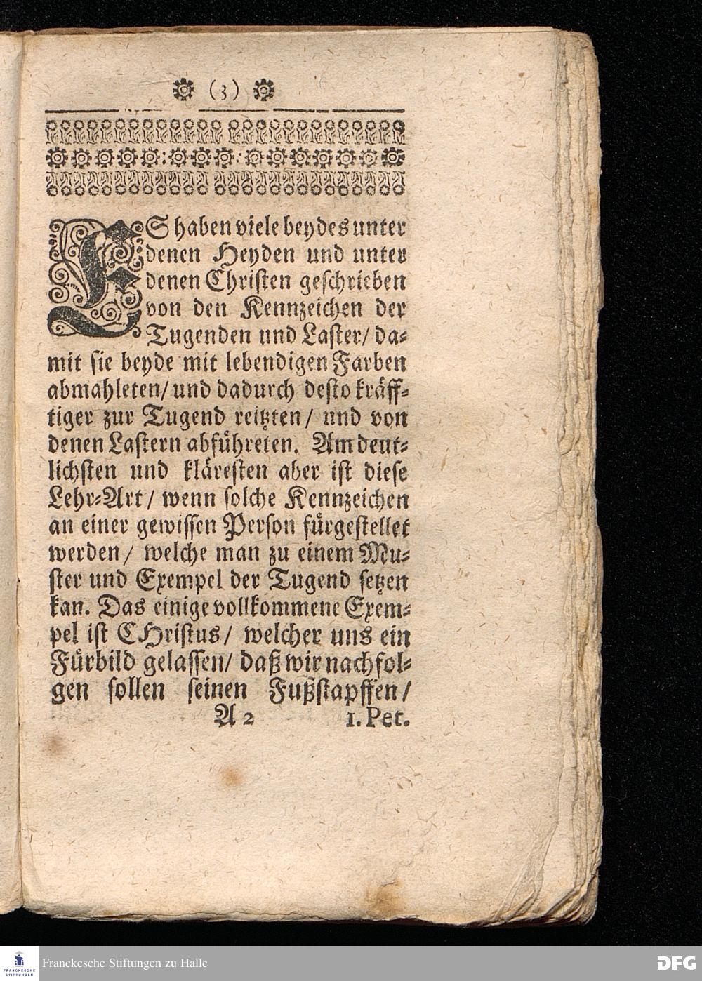 Timotheus Zum Fürbilde Allen Theologiæ Studiosis dargestellet von M.Aug.Hermann Francken / S.Theol.Prof.P.Ord.& Past.Glauch. Editio tertia. [Bibelzitat.] Halle / verlegts Joh.Friedrich Zeitler 1704.