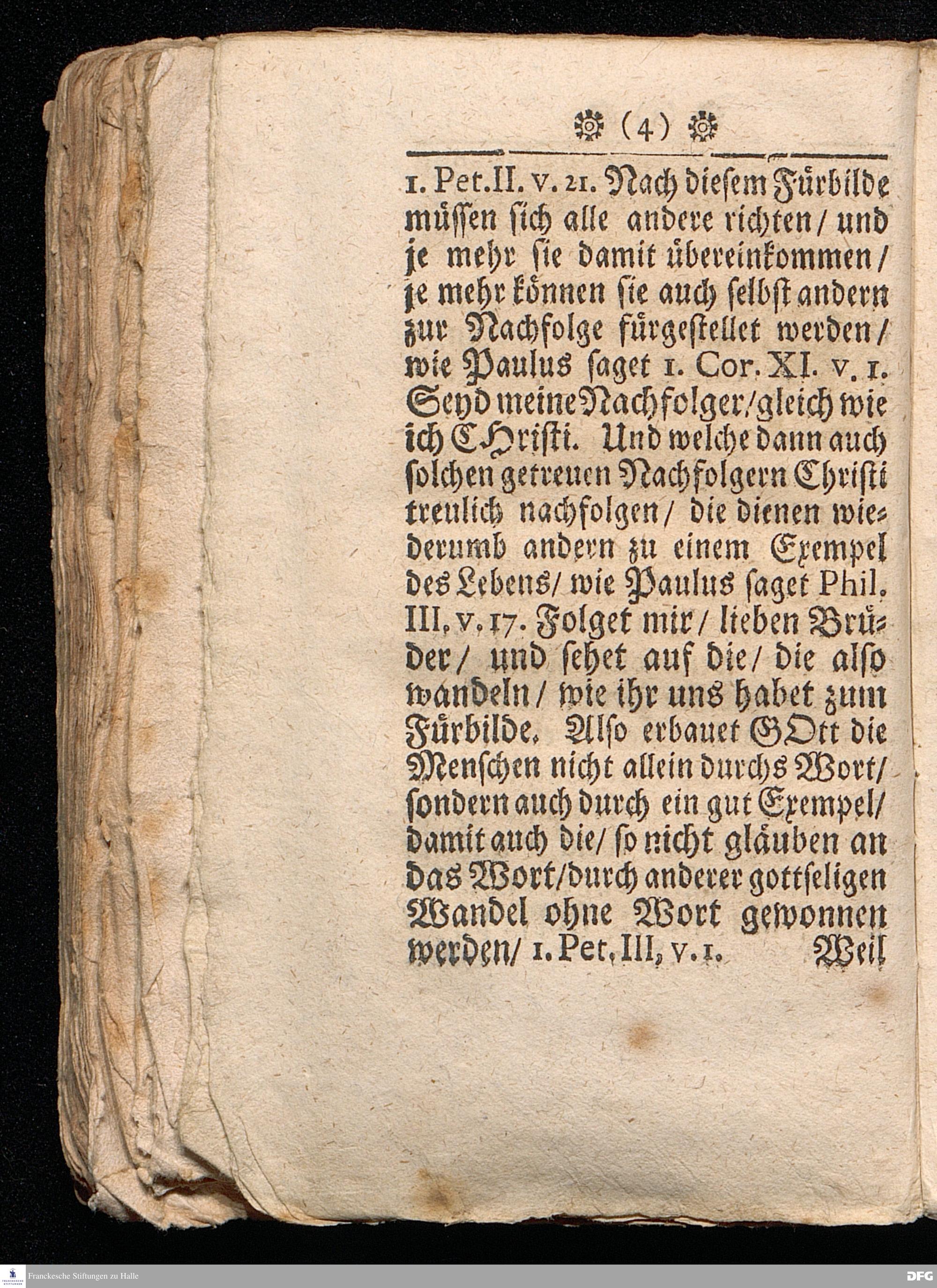 Timotheus Zum Fürbilde Allen Theologiæ Studiosis dargestellet von M.Aug.Hermann Francken / S.Theol.Prof.P.Ord.& Past.Glauch. Editio tertia. [Bibelzitat.] Halle / verlegts Joh.Friedrich Zeitler 1704.